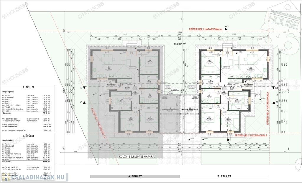 - bruttó beépített alapterület 133,41 m2