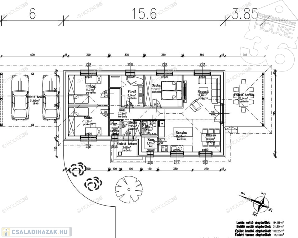 Kiváló műszaki tartalommal, nappali + 3 szobás családi ház, dupla fedett gépkocsi beállóval, 18 m2-es fedett terasszal Kadafalván eladó!