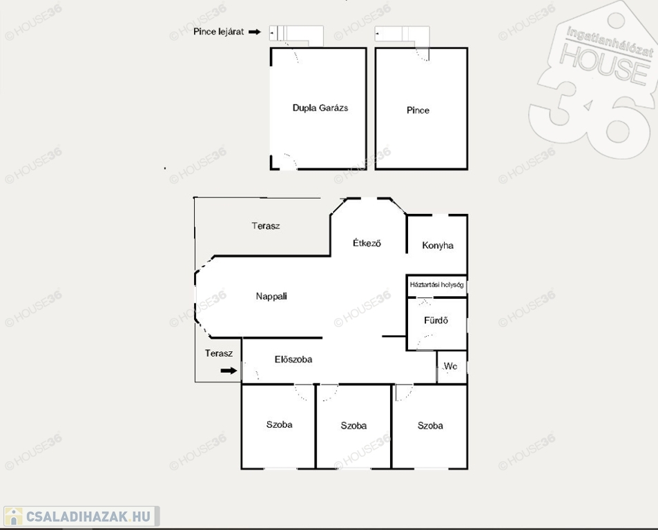- Garázs: 30 m2; dupla garázs