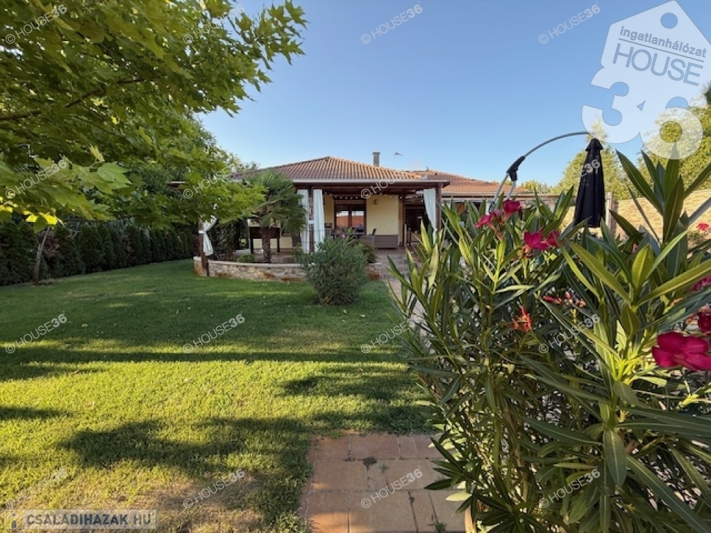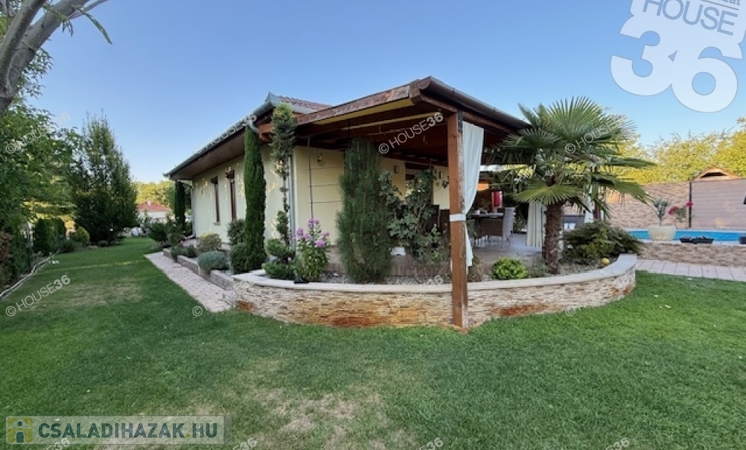 Kecskemét vonzáskörzetében Ballószögön, 2016-ban épült, Nappali + 4 szobás családi ház, 1301 m2-es telken, gyönyörű kerttel, medencével, 60 m2-es fedett terasszal, dupla garázzsal eladó!