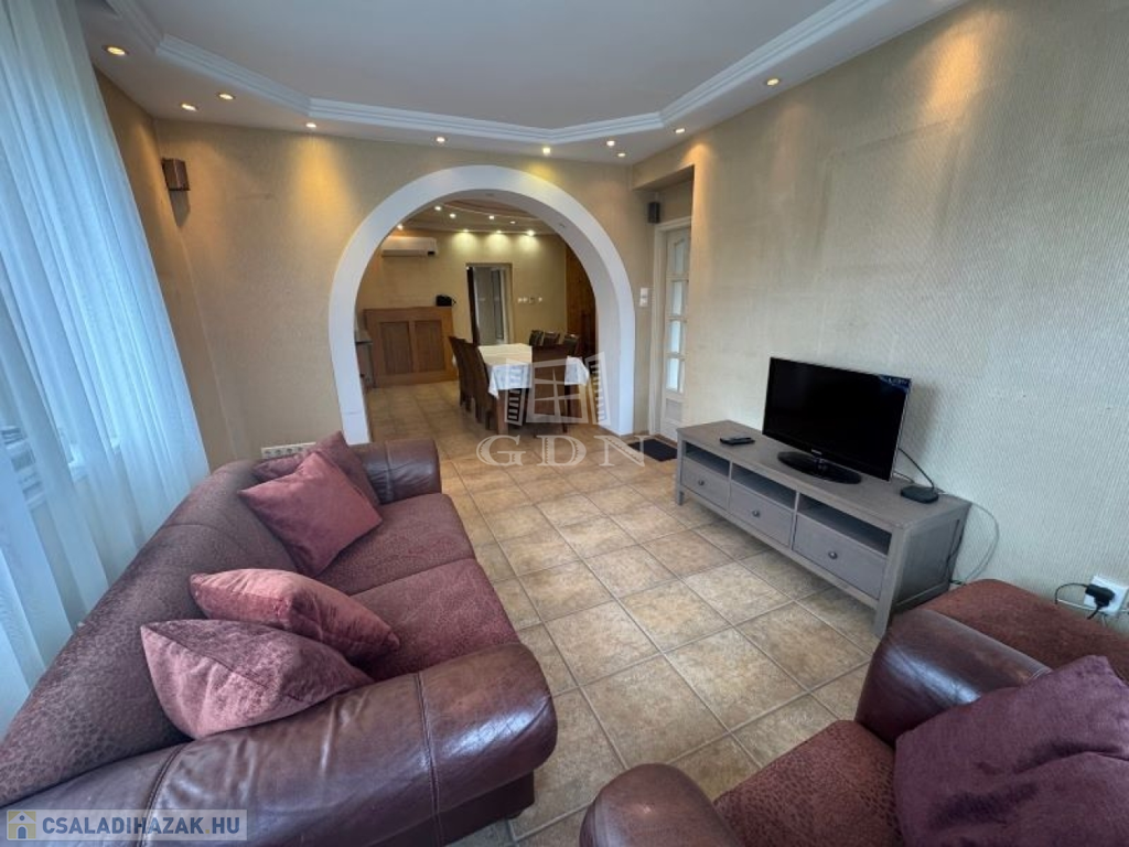 A ház 3 szintes ,260 nm alapterülettel rendelkezik, melyből 160 nm a lakóterület és összesen 7 szobával büszkélkedhet.