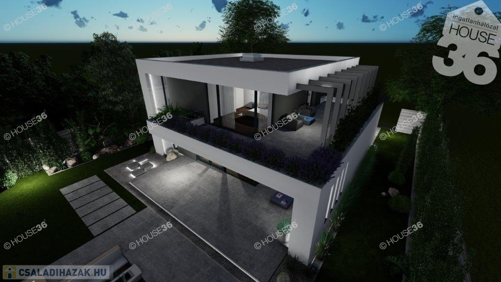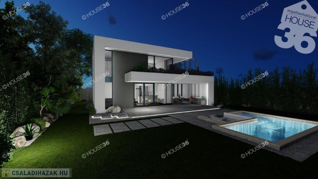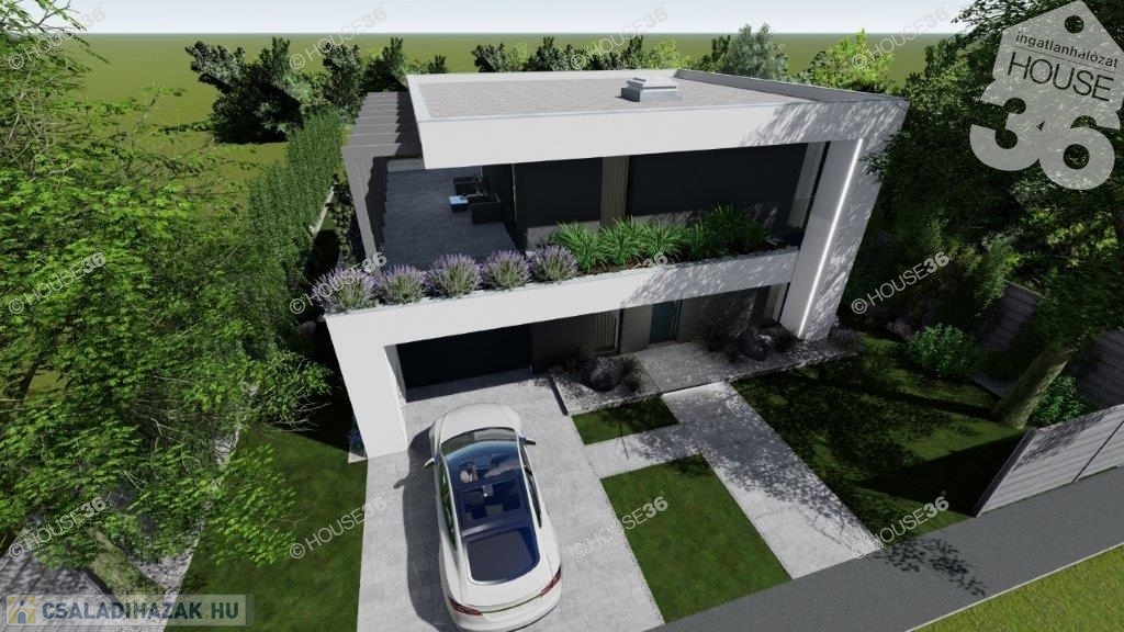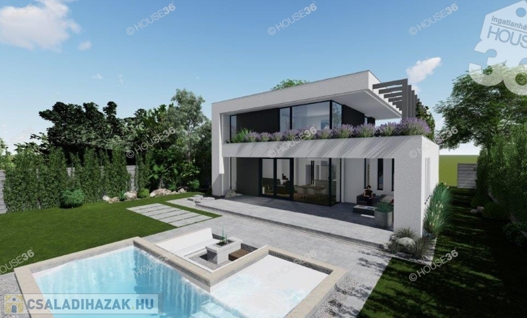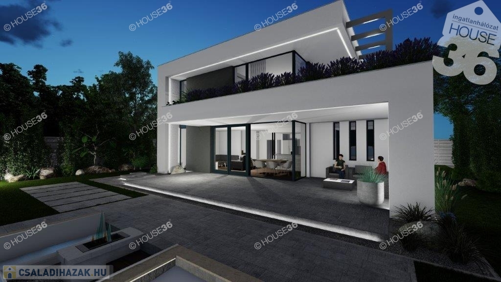 Az összközműves, 900 m2-es telekre egy 126 m2-es prémium minőségű 2 szintes házat terveztek.