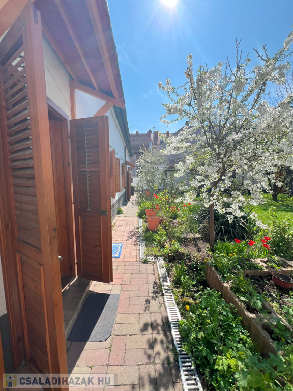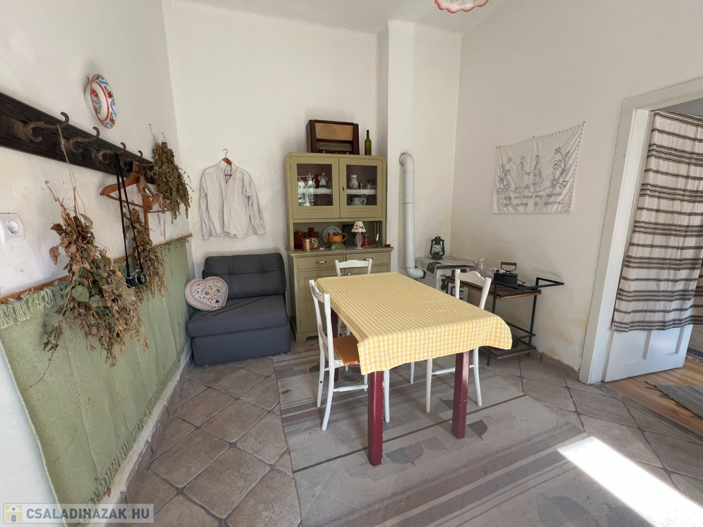 Az ingatlan jellemzői: A 90 m²-es első lakrészt néhány éve teljesen felújították, miközben megőrizték a klasszikus polgári stílusát. A felújítás során új tetőt és hőszigetelt fa nyílászárókat kapott. Külső és belső falait szigetelték fugával benyomott lemezzel. Emellett megújultak a víz- és elektromos rendszerek, valamint a fürdőszobák és a konyhák is modernizálódtak. Az épület tágas előszobába vezet, ahol egy külön WC is található. Innen nyílik az étkező, egy jól felszerelt konyha, a fürdőszoba, a nappali, és egy kényelmes hálószoba.