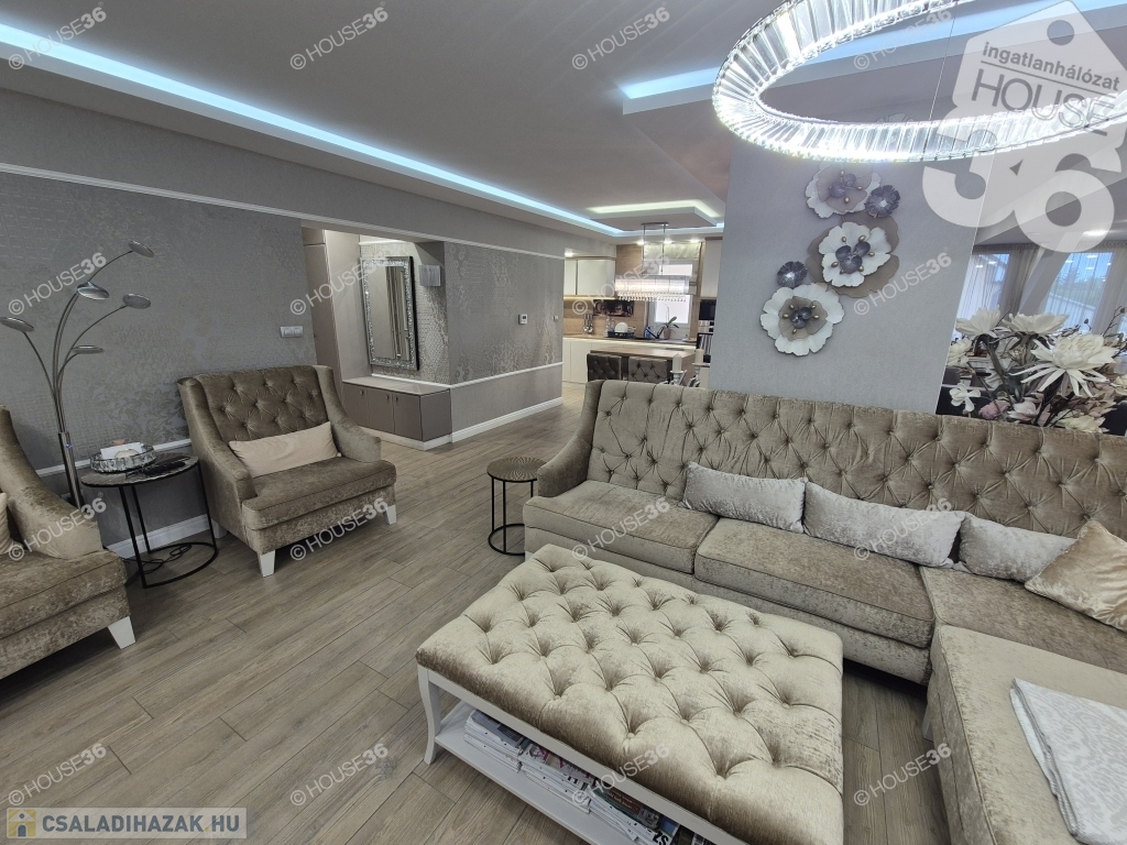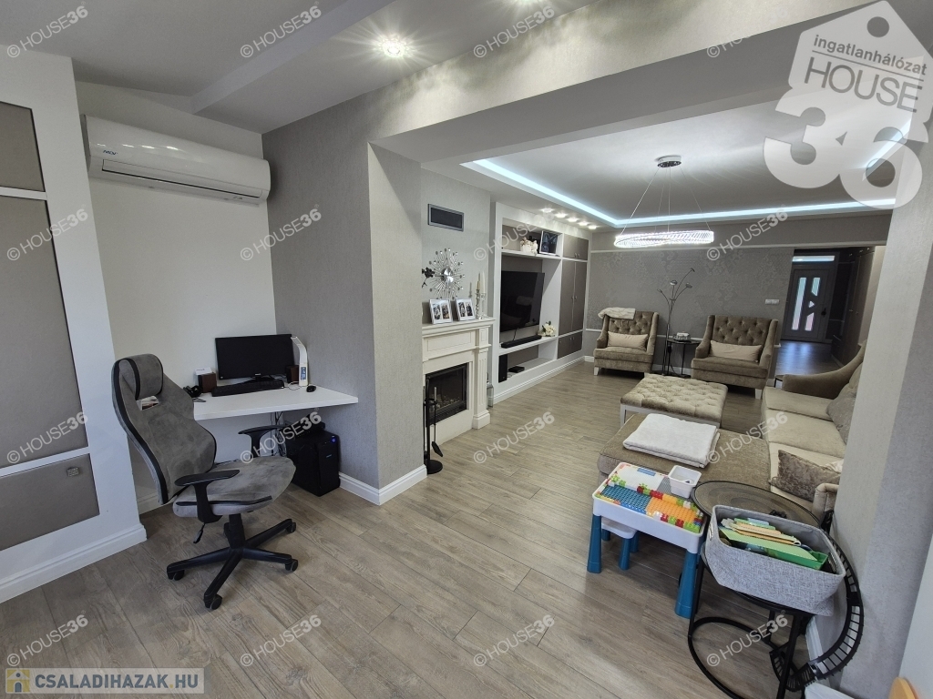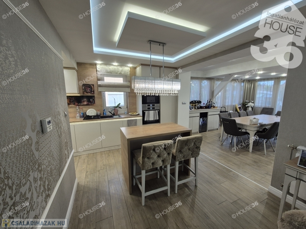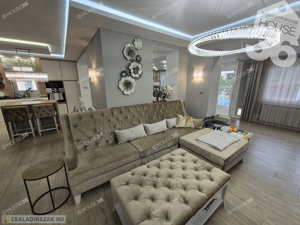 Eladóvá vált egy 2020 -ban gyönyörűen nívós luxus kivitelben felújított 2000-es építésű 153 nm -es nappali + 3 szobás családi ház medencével.