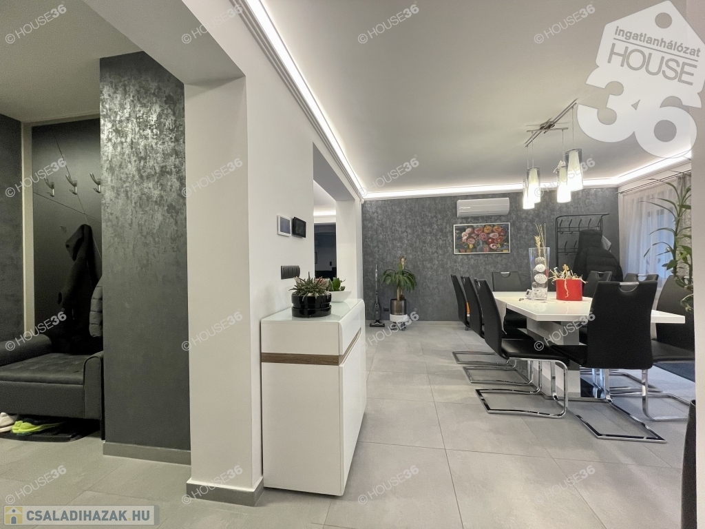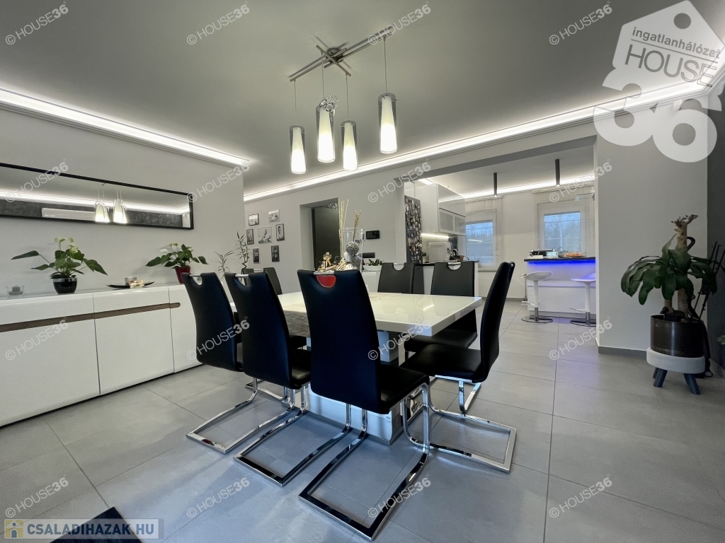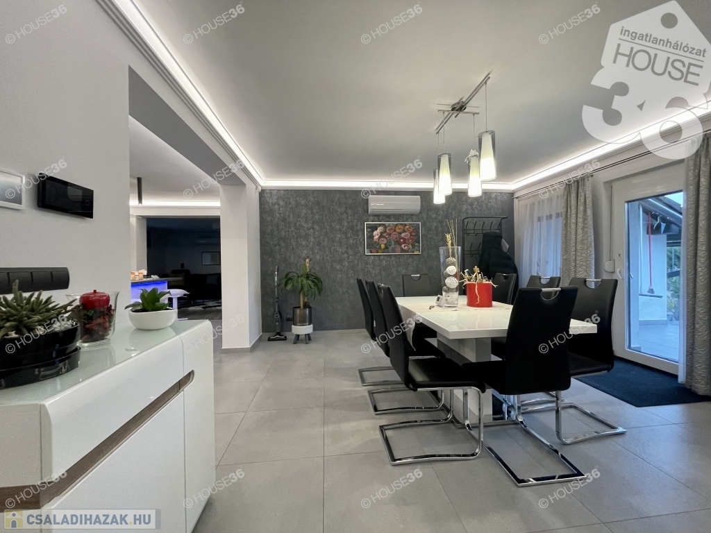 Kecskeméten, Belsőnyír kedvelt részén, 2002-ben épült, de 2018-ban újjágondolt és átépített, luxus minőségű, 4300 m2-es telken, 239 m2-es, nappali+ 4 szoba+ 2 fürdőszobás, minden igényt kielégítő családi ház számtalan extrával eladó!