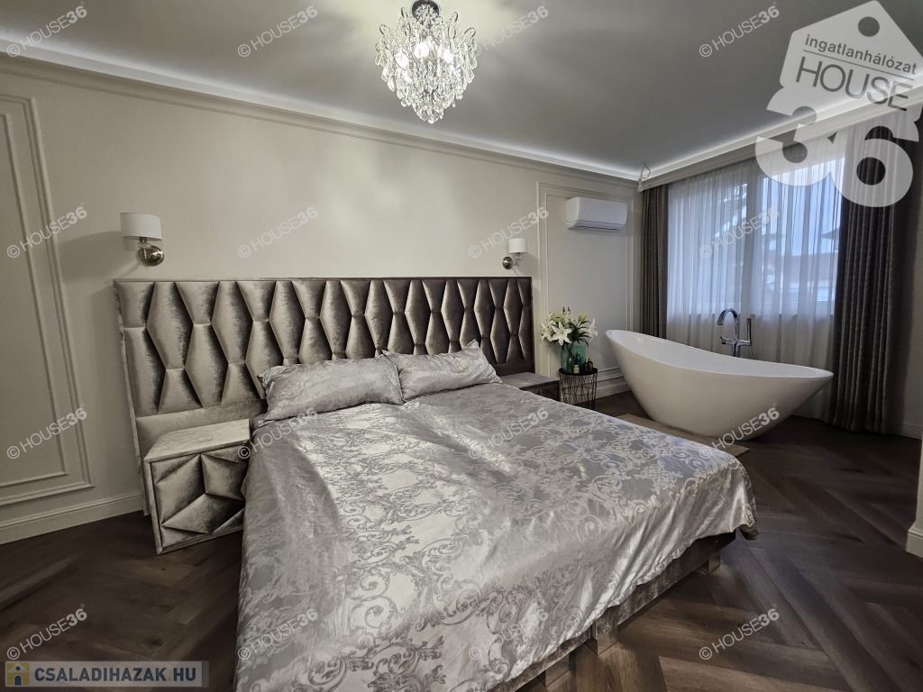 Kecskemét egyik legkedveltebb és legjobb zsákutcájában, ami a Vacsiközben található, 600 m2-es telken, 3 szinten 293 m2-es, 5 szobás + 5 fürdőszobás + 3 gardróbos, nagy terekkel-és kialakításokkal, belsőépítész által álmodott-és újra gondolt luxus családi ház számtalan extrákkal eladó! Minden szoba lakosztály, saját gardróbbal, fürdővel. A ház még nincs teljesen kész, az udvar, a medencetér és a vendégház még befejezésre vár. Mindenképp látni kell!