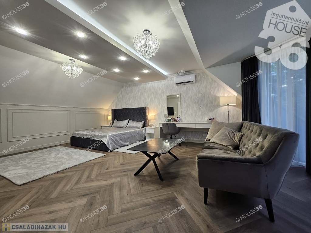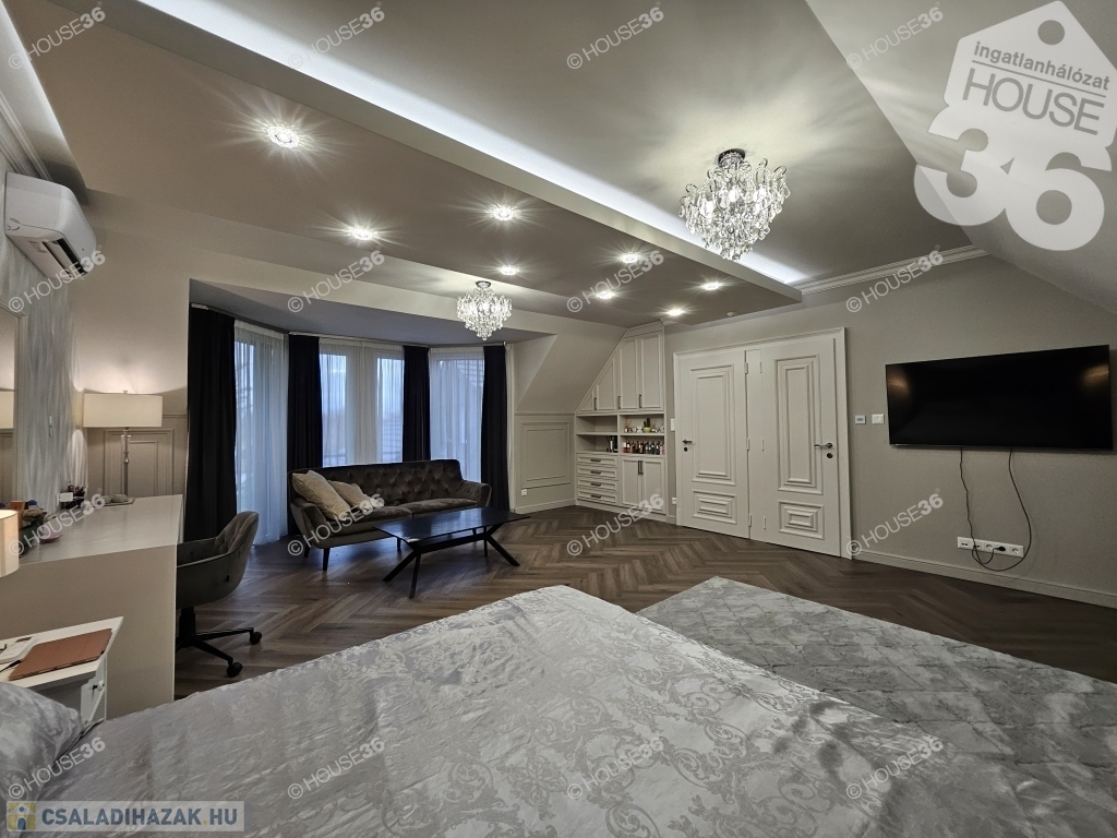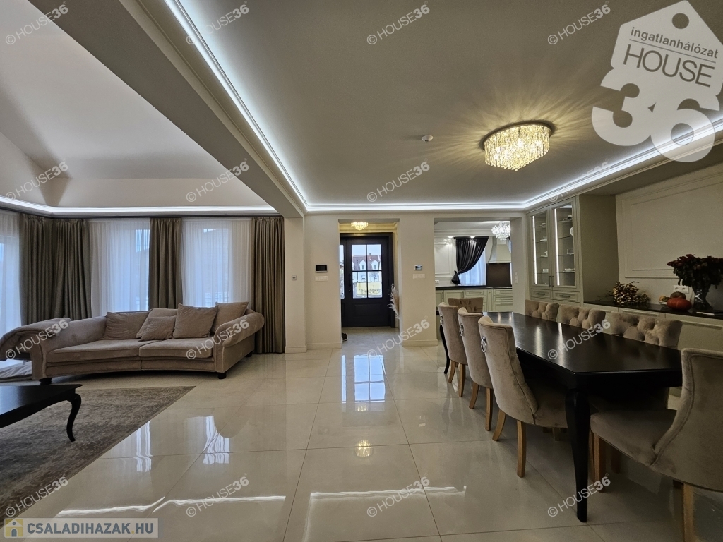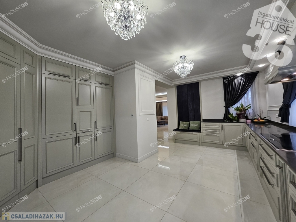 Kecskemét egyik legkedveltebb és legjobb zsákutcájában, ami a Vacsiközben található, 600 m2-es telken, 3 szinten 293 m2-es, 5 szobás + 5 fürdőszobás + 3 gardróbos, nagy terekkel-és kialakításokkal, belsőépítész által álmodott-és újra gondolt luxus családi ház számtalan extrákkal eladó! Minden szoba lakosztály, saját gardróbbal, fürdővel. A ház még nincs teljesen kész, az udvar, a medencetér és a vendégház még befejezésre vár. Mindenképp látni kell!