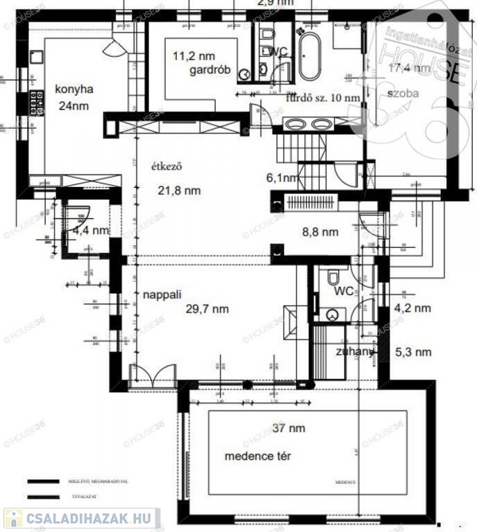 -burkolt beltéri medence (terasz-és nappali felé) még befejezésre vár, hozzá zuhanyzó-és wc