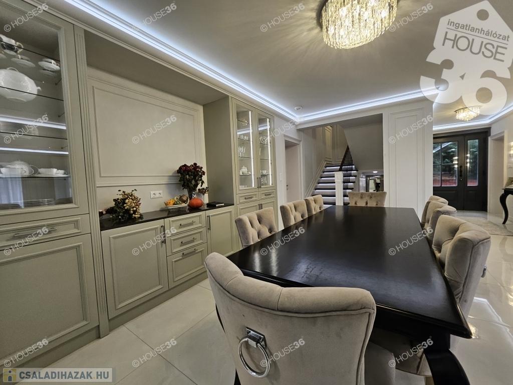 Kecskemét egyik legkedveltebb és legjobb zsákutcájában, ami a Vacsiközben található, 600 m2-es telken, 3 szinten 293 m2-es, 5 szobás + 5 fürdőszobás + 3 gardróbos, nagy terekkel-és kialakításokkal, belsőépítész által álmodott-és újra gondolt luxus családi ház számtalan extrákkal eladó! Minden szoba lakosztály, saját gardróbbal, fürdővel. A ház még nincs teljesen kész, az udvar, a medencetér és a vendégház még befejezésre vár. Mindenképp látni kell!