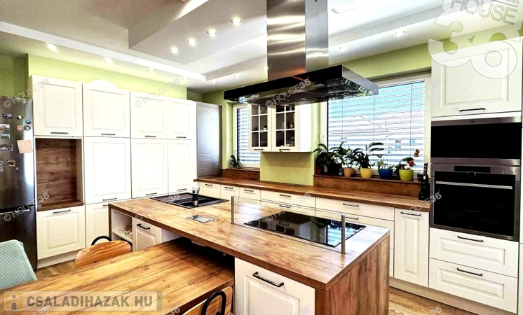 Kecskeméten, a Máriahegyben eladó, egy 2020-ban magas műszaki tartalommal épült,kiemelkedő energia-hatékonysággal működő nettó 273m2-es lakóterületű családi ház 43m2-es duplagarázzsal 1194m2-es telken!