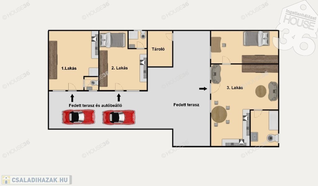 3 külön lakrész kialakítva: