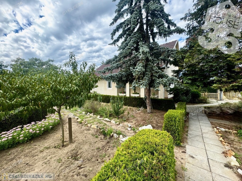 1961 m²-es, gondozott telek, gyönyörű örökzöldekkel