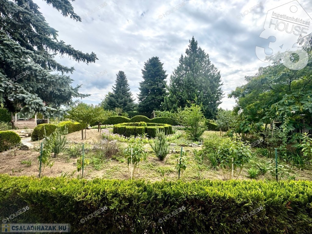 1961 m²-es, gondozott telek, gyönyörű örökzöldekkel
