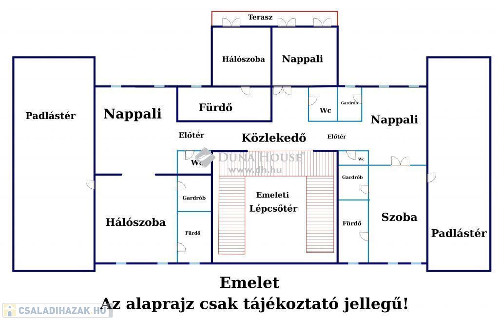 - A felső szintre 2 db íves lépcső vezet fel, három lakrész található, melyben nappali, háló és fürdő lett tervezve, ez 302 nm-es.