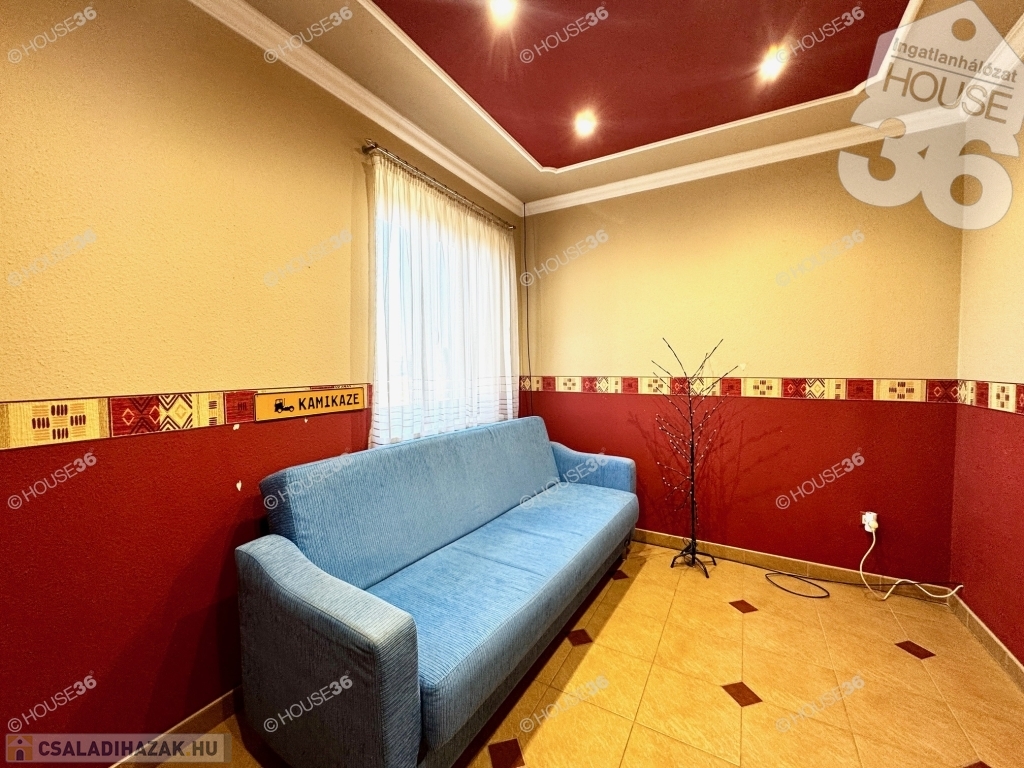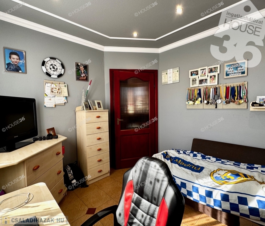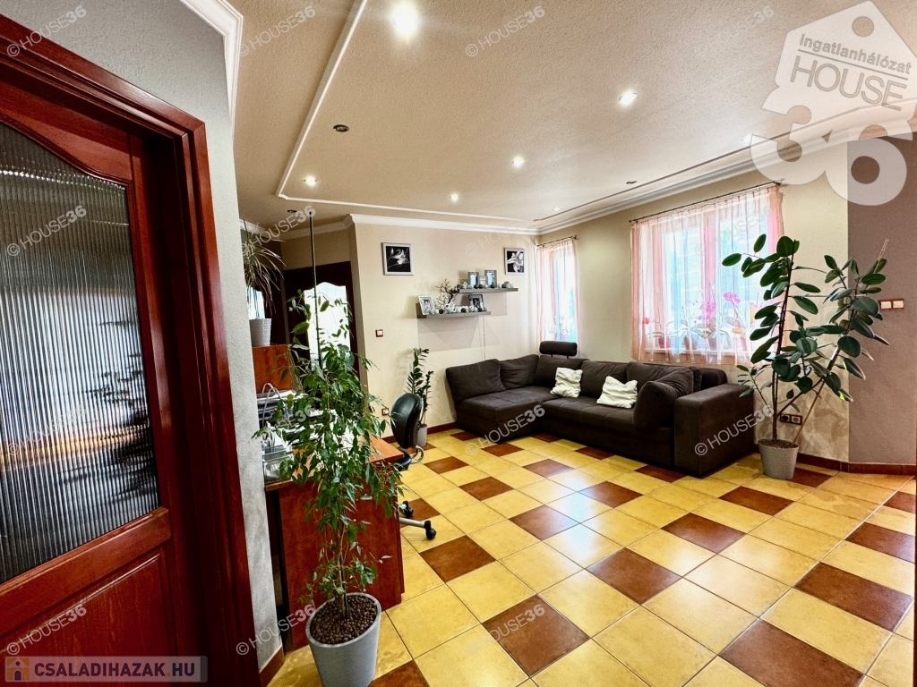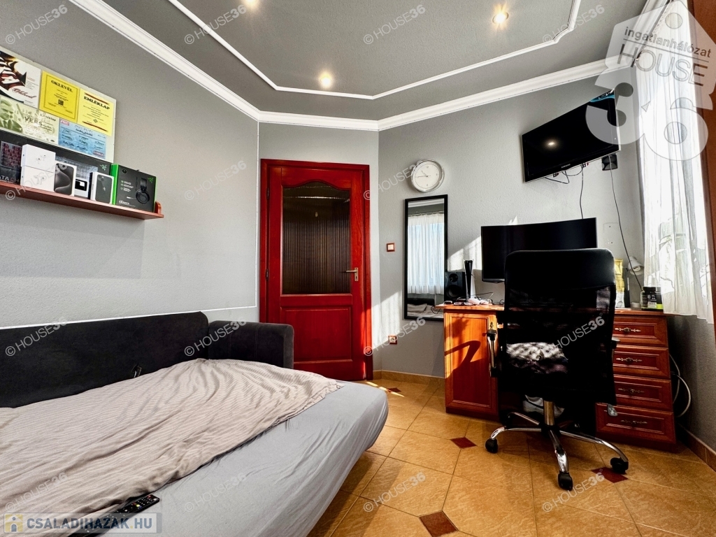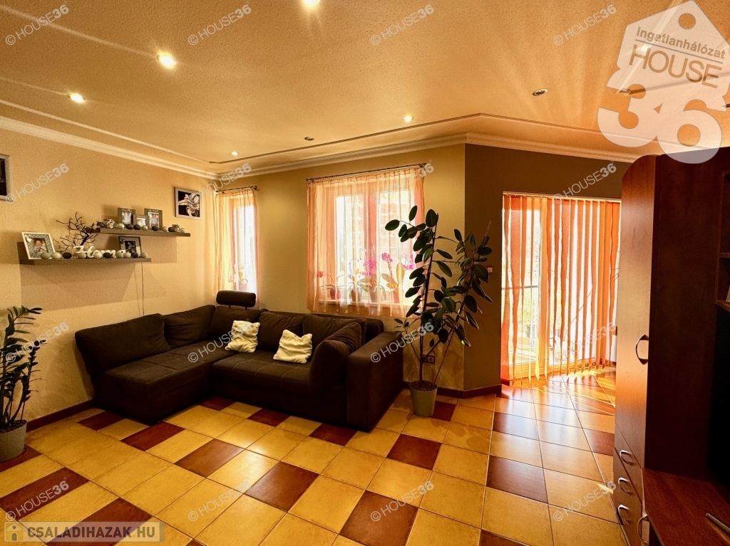 Extrák: 2 terasz (3 m2 és 12 m2), garázs elektromos kapuval, fűthető + udvari beálló