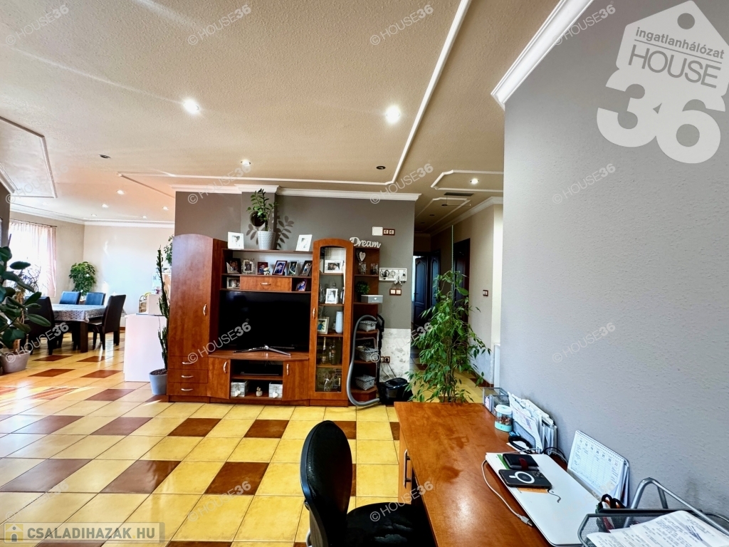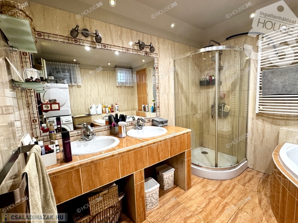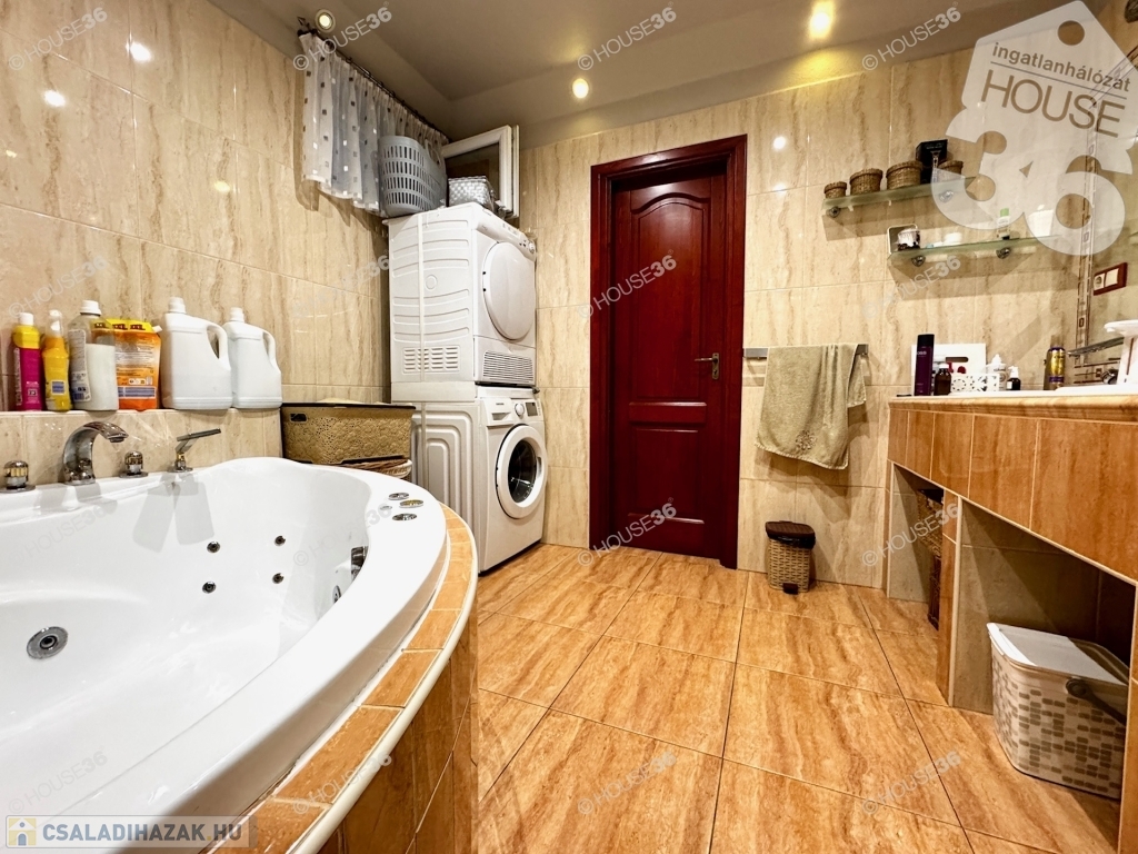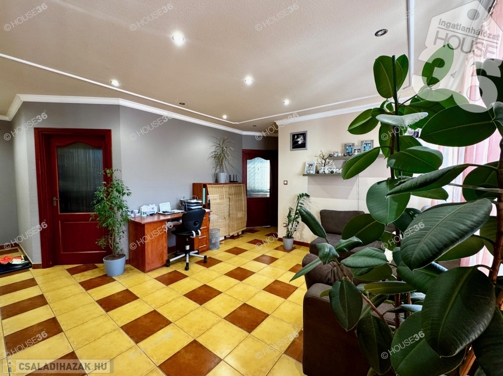 Extrák: 2 terasz (3 m2 és 12 m2), garázs elektromos kapuval, fűthető + udvari beálló