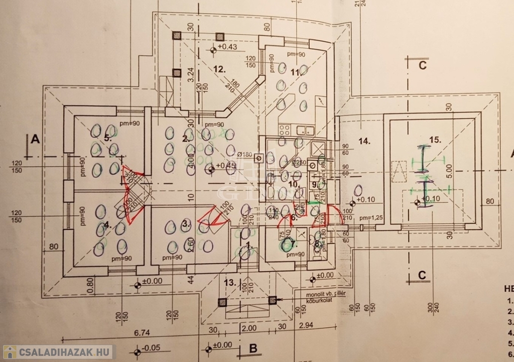 A családi ház építése 2009-ben kezdődött, alapja és koszorúja vasalt beton. Falazata Porotherm 44-es tégla, 5 cm szigeteléssel födém fa szigeteléssel és gipszkartonnal.