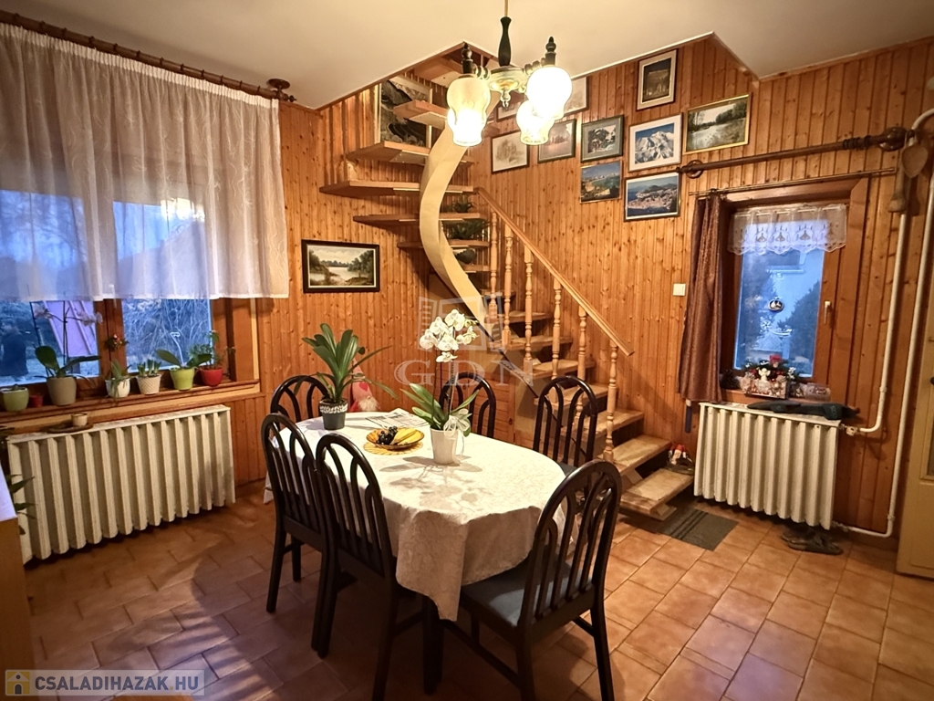 Kecskemét, Kósafalu kertvárosi részben 912 nm telken, 2 szintes nettó 110 nm családi ház eladó. A földszinten 33 nm nappali, mely igény szerint 2 szobává alakítható, előszoba+étkező, konyha, kamra, fürdőszoba, wc kapott helyet, az emeleten 3 szoba, fürdőszoba lett kialakítva. A ház 1990-ben tégla falazattal épült, 8 cm szigeteléssel, alápincézett. Az ingatlanhoz 20 nm terasz kapcsolódik. A melléképület 80 nm, melyből 22 nm egy külön lakrész, konyhával, fürdőszobával. A további rész 3 autó tárolására alkalmas garázs, tároló. Az ingatlan tehermentes, igény esetén akár teljes bútorzattal is eladó, azonnali birtokbaadással. A környezet csendes, biztonságos, családiházas övezet, kiváló megközelítéssel, közlekedéssel, közelben a Mercedes-Benz, de a városközpont is néhány perc autóval. Ideális választás két generáció nyugalmas együttélésére, fiatal, gyermekes családoknak, de az idősebb korosztály is megtalálja kényelmes életterét.