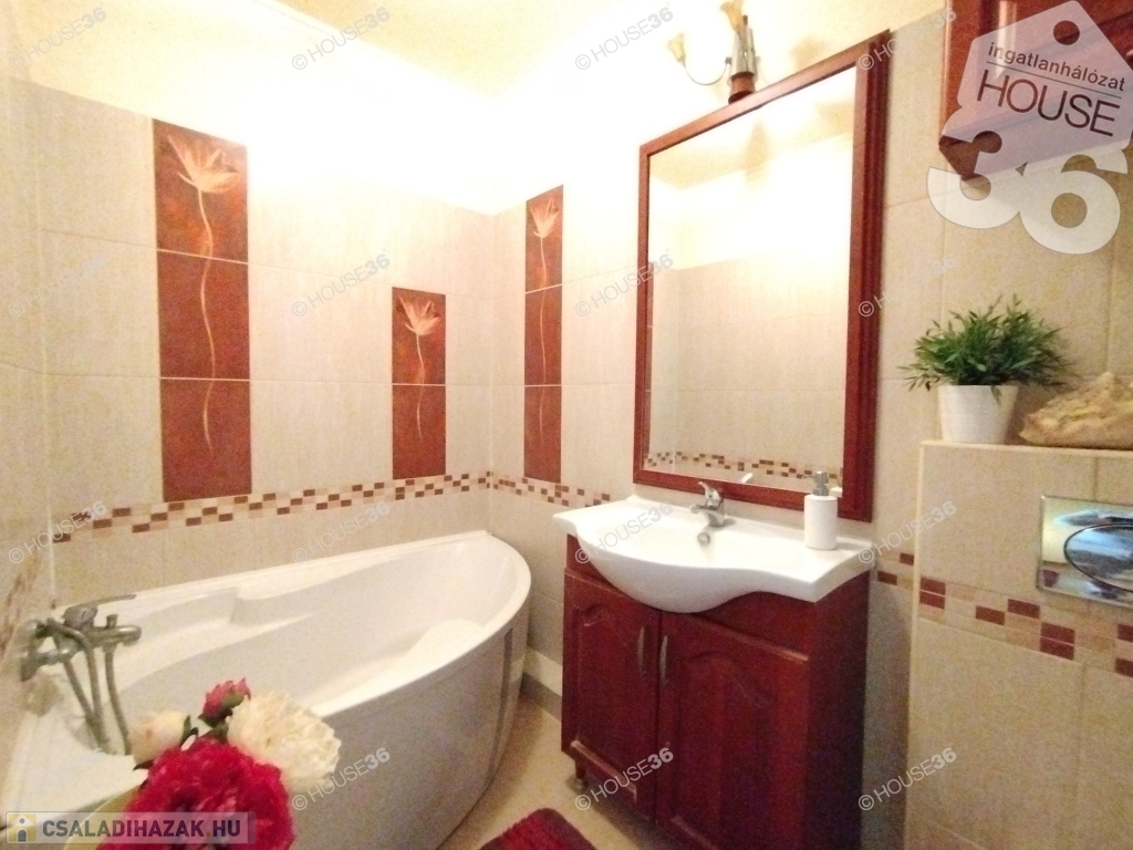 A felső szinten találjuk a fürdőt ami káddal és wc- vel van ellátva, továbbá az alsó szinten is rendelkezésre áll egy különálló illemhelyiség