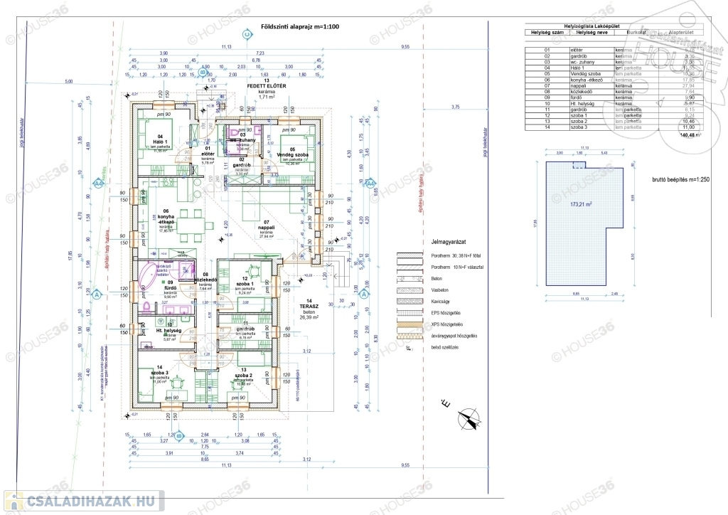 - nettó 140,48 m2 lakóház, 5 szoba+nappali+gardrób+2 fürdőszoba
