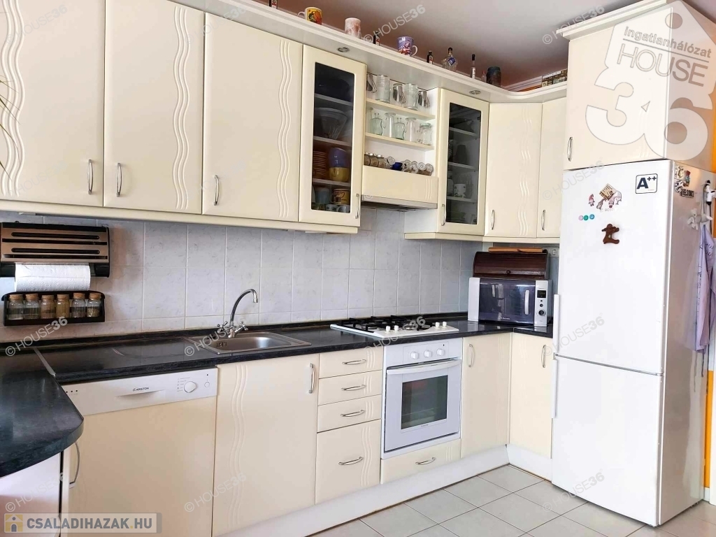 100 m²-es, 3 szintes, tetőtér beépítéses sorház eladó rendezett, családias környezetben. Az ingatlan 2003-ban épült, 2013-ban felújítást kapott, így esztétikailag és műszakilag is jó állapotú.