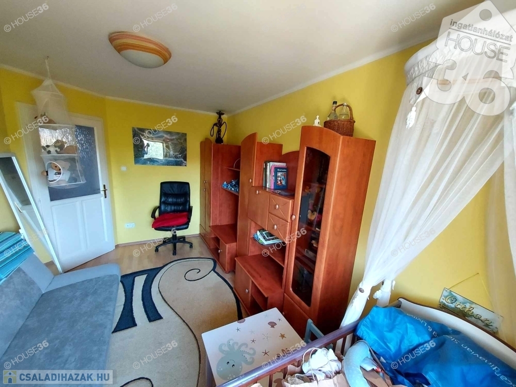 A házban összesen 5 szoba található, így kiváló választás nagyobb családoknak vagy akár otthoni irodát keresőknek is. A nappalihoz kapcsolódik egy 14 m²-es terasz, amely a 200 m²-es, füvesített, intim kertre néz – tökéletes helyszín pihenésre és baráti, családi összejövetelekre. A kertben kerti sütögető és egy 8 m²-es faház (kerti tároló) is rendelkezésre áll.