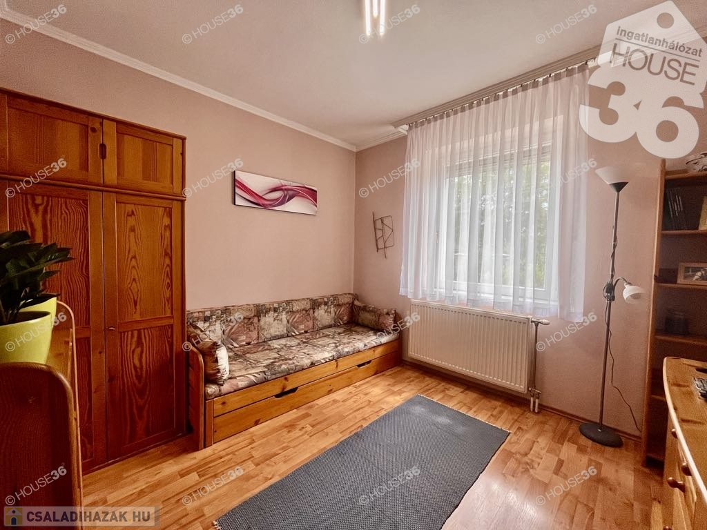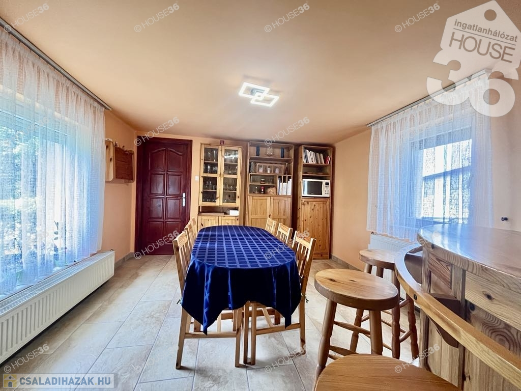 A ház tágas, rendkívül világos, nagyon jó műszaki állapotú, kertje rendezett, gondozott, számos extra épülettel.