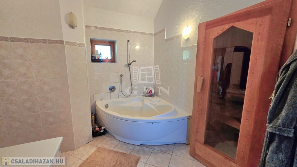 Egy hosszú nap után egy négyszemélyes beépített szauna nyújt tökéletes kikapcsolódást, mely a fürdőn keresztül érhető el.
