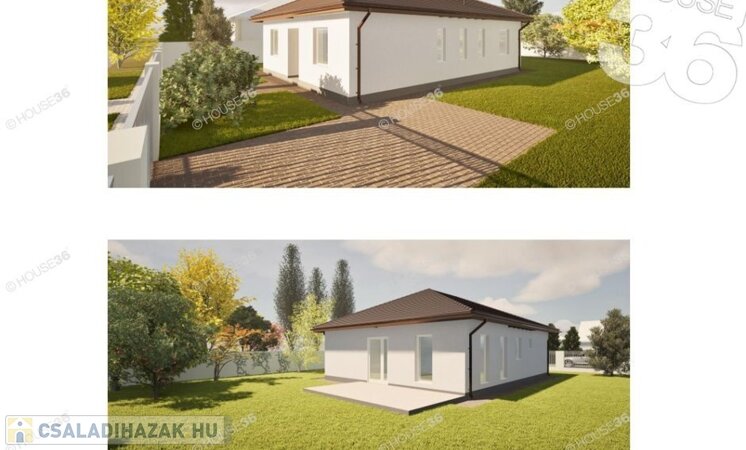 ELADÓ egy új építésű családi ház aszfaltozott út mellett lévő 620 m2-es önállósarki telken.