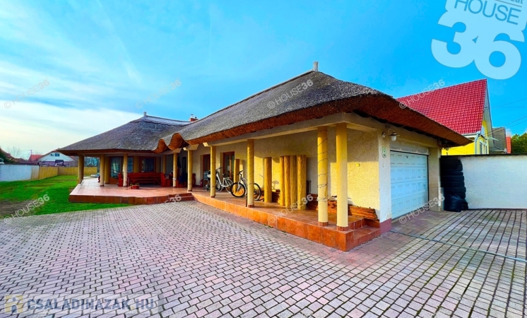 Eladó Kecskemét-Hetényegyháza kedvelt családi övezetében, Kecskeméthez közel eső részen egy 1993 szeptemberében átadott, PRÉMIUM minőségű hagyományos anyagokból igényesen megépített nádtetős villa.