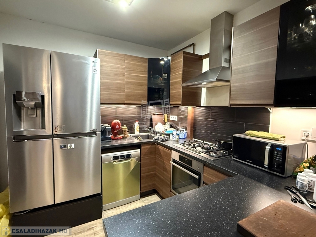 Kecskemét-Kadafalva új építésű családi házas övezetében, aszfaltos utcában 711 nm telken, újszerű, 94 nm lakóterű nappali+3 szobás modern családi ház eladó. Az ingatlan 2018-ban tégla falazattal, 30 cm födém, 15 cm homlokzati szigeteléssel, kiváló esztétikai és műszaki tartalommal épült. Élhető terek, praktikus elosztás, amerikai konyhás nappali, spájz, háztartási helyiség, dupla wc és fürdőszoba, 20 nm fedett terasz teszi még komfortosabbá a lakók életét.
