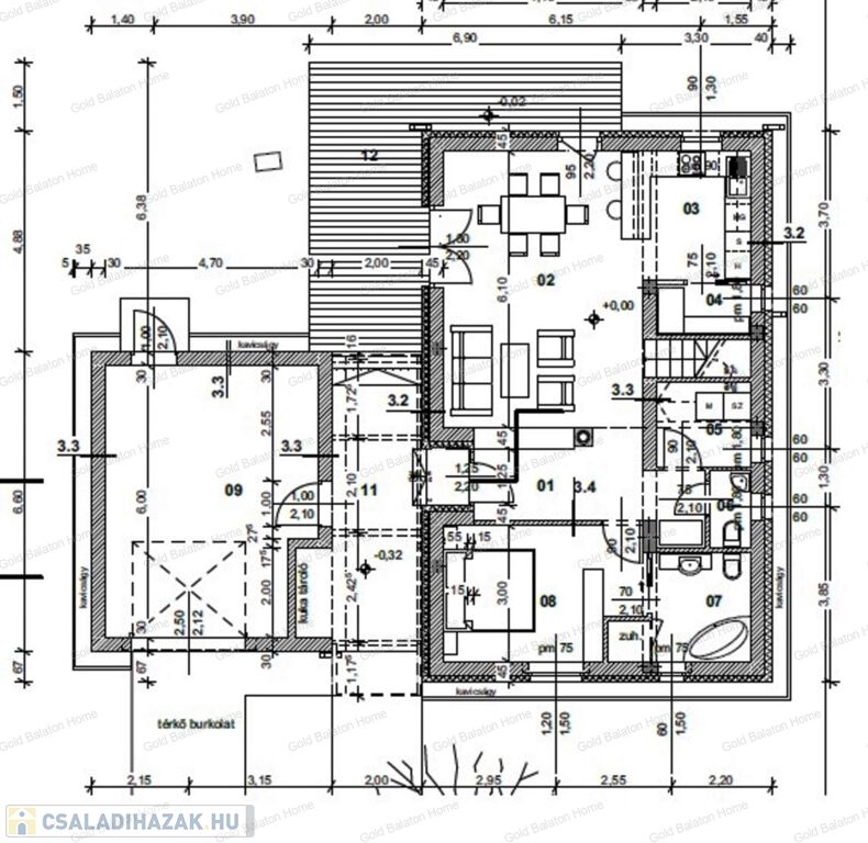 - alapterület: 141,5 nm + 23,35 nm-es terasz + 26,62 nm-es garázs, telek mérete: 725 nm