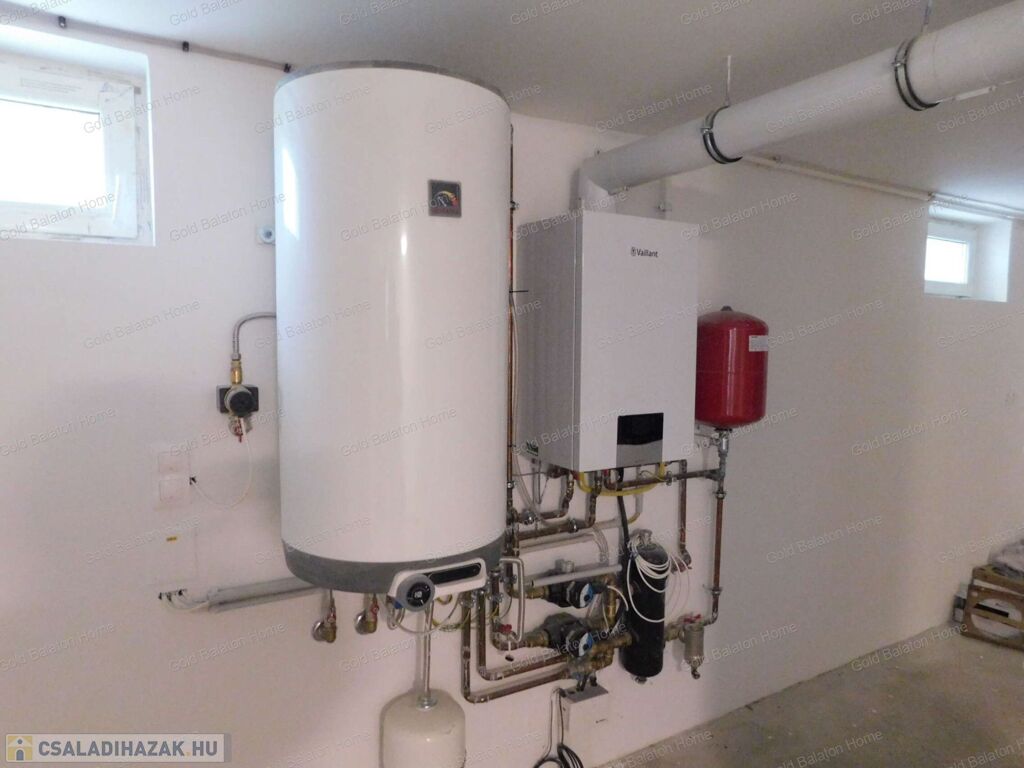 - fűtés: kondenzációs fali gázkazán, padlófűtés a nappaliban és a tetőtéri társalgóban, a szobákban – radiátoros fűtés