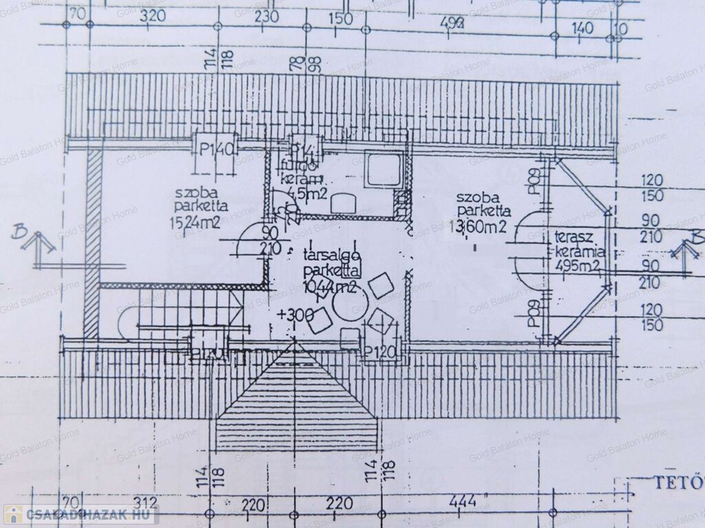 - tetőtér: közlekedő, társalgó, 2 szoba, fürdőszoba + WC, természetre néző erkély