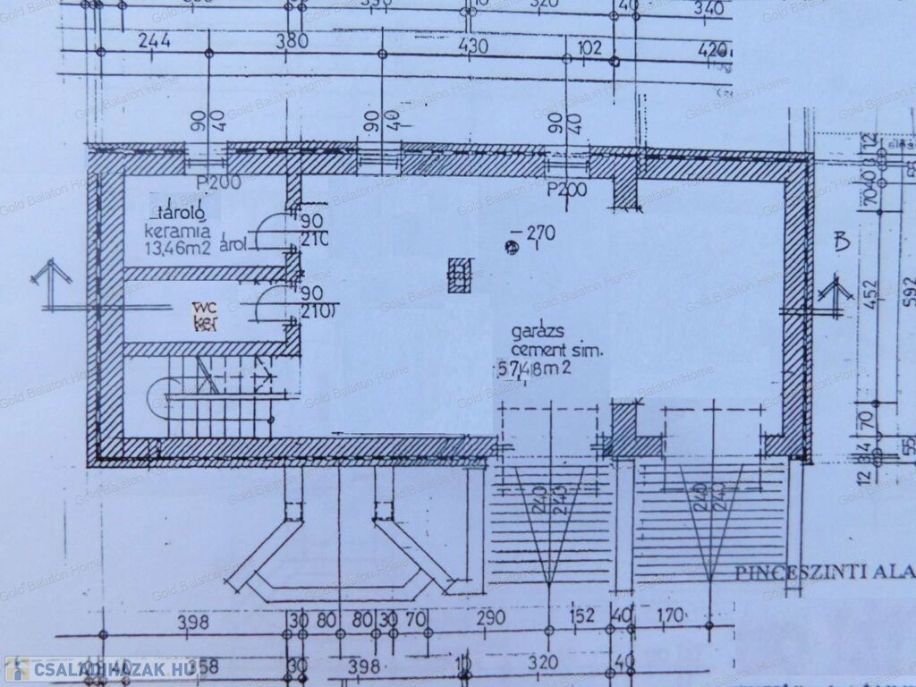 - pinceszint: közlekedő, dupla garázs, WC, tároló