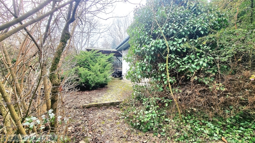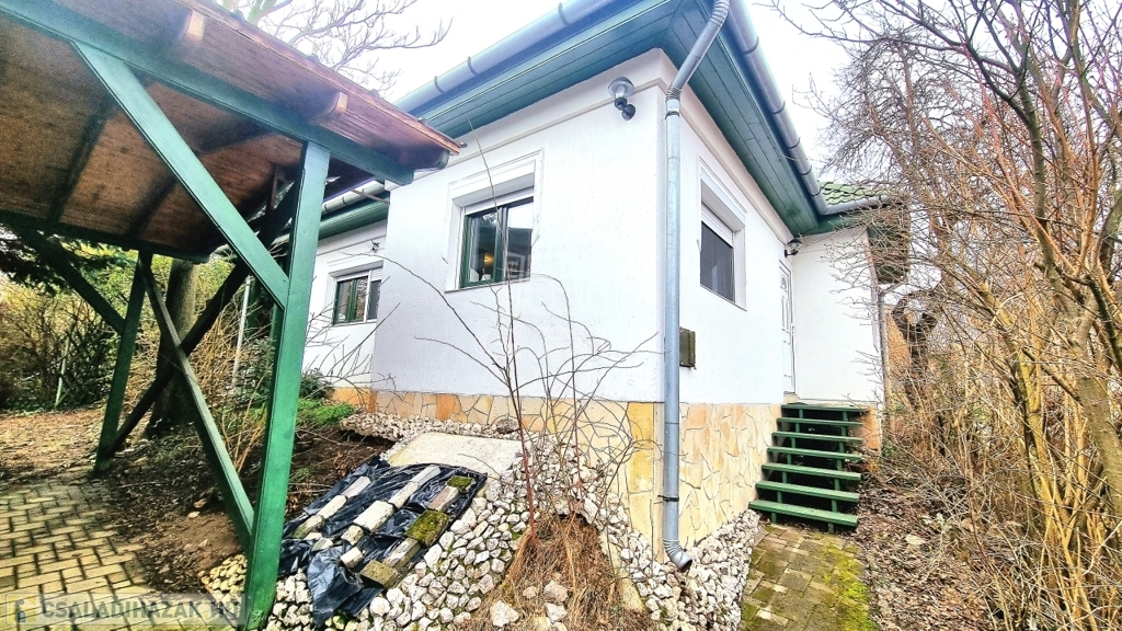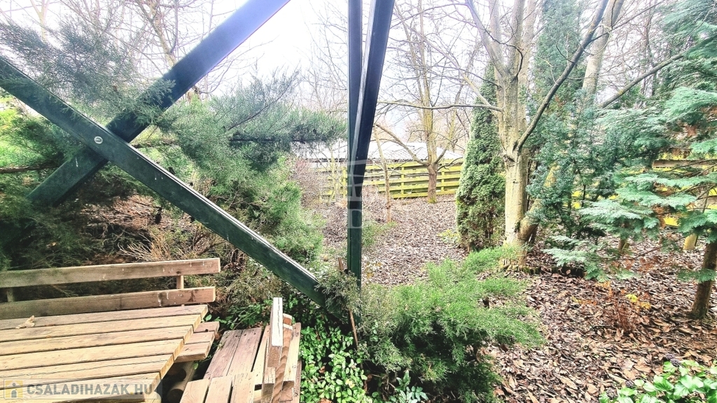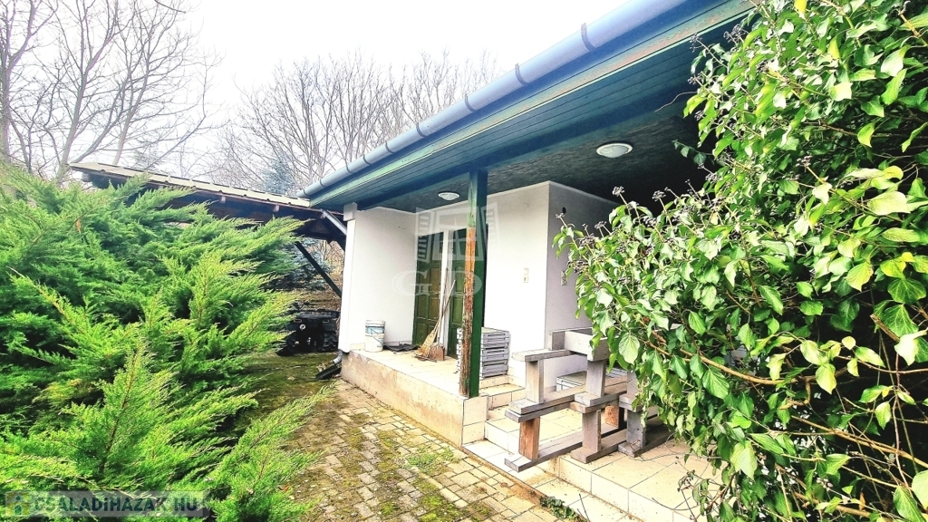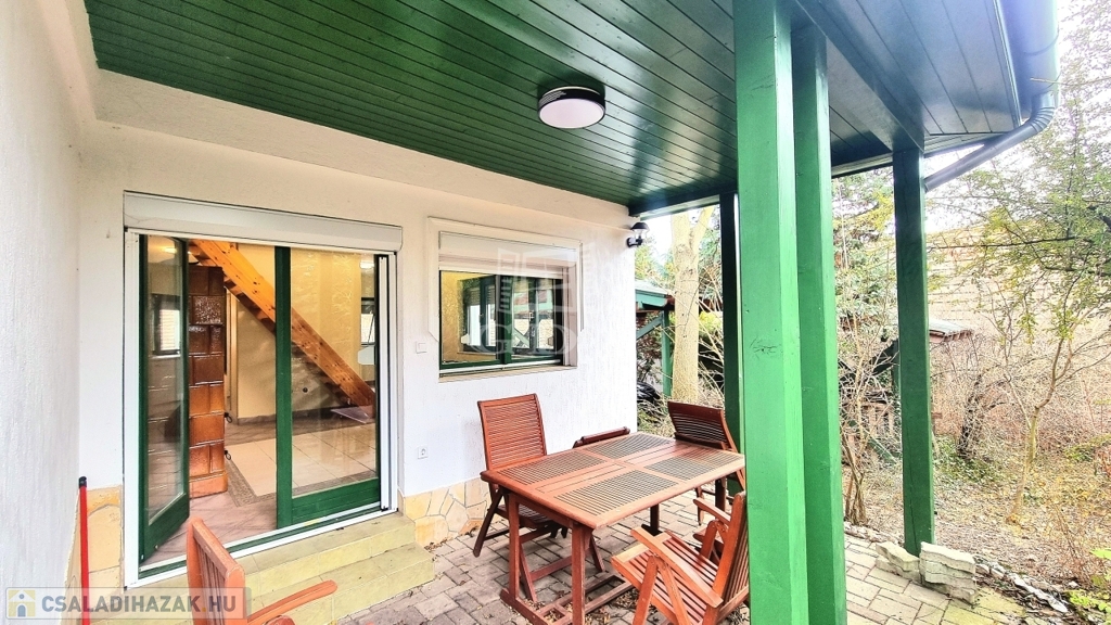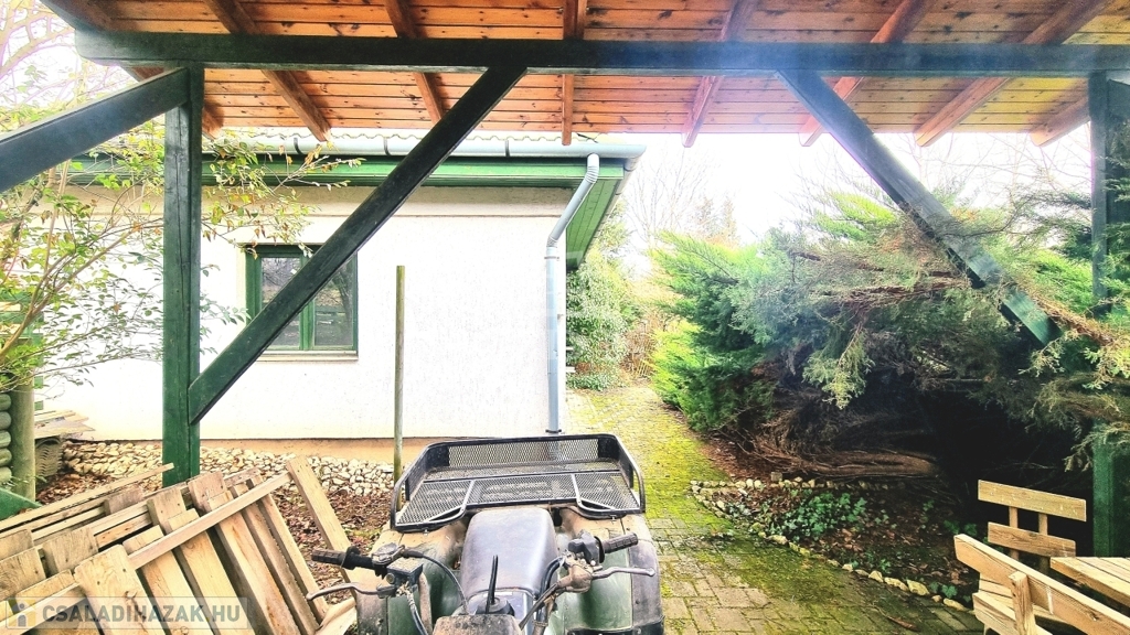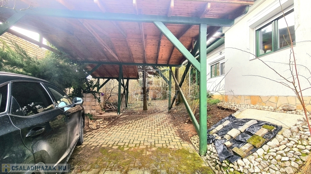 A 800 nm-es gondozott, vadregényes ,intim telken grillező terasz és e fedett kocsibeálló lett kialakítva.