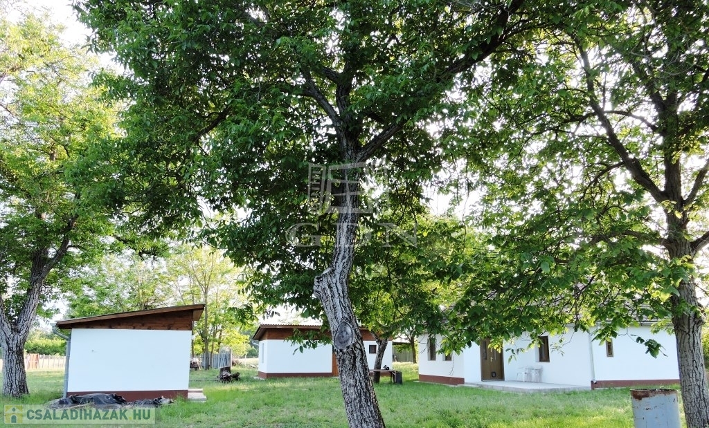 Főépület: 70 nm 2 szoba-konyha-fürdőszoba. Fűtés villanyról, vagy épített cserépkályháról oldható meg.