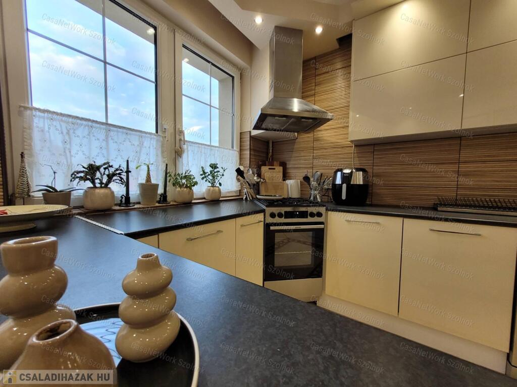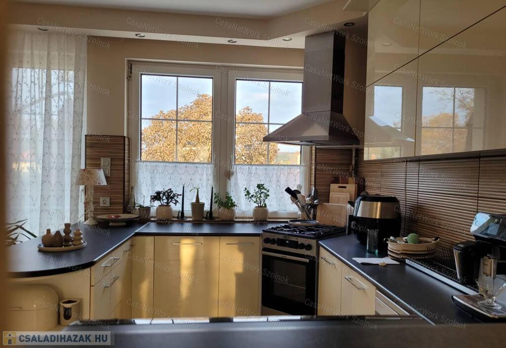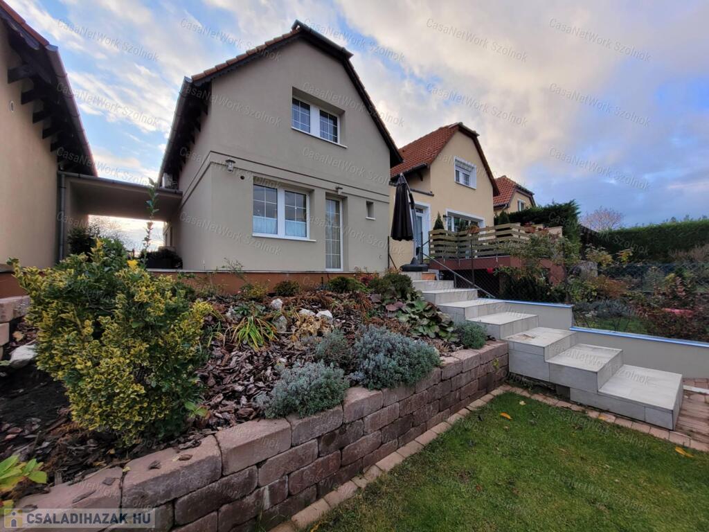 A Szolnoki CasaNetWork ingatlaniroda megvételre kínál Kerepes–Szilasliget csendes, rendezett utcájában egy 105 m²-es, kétszintes családi házat, 28 m² szuterén tárolóval, 36 m²-es burkolt terasszal és 36 m² részben fedett kocsibeállóval.