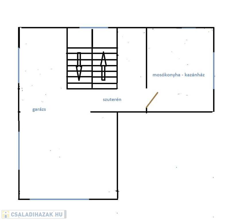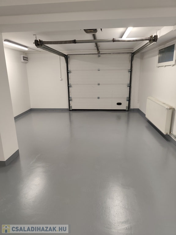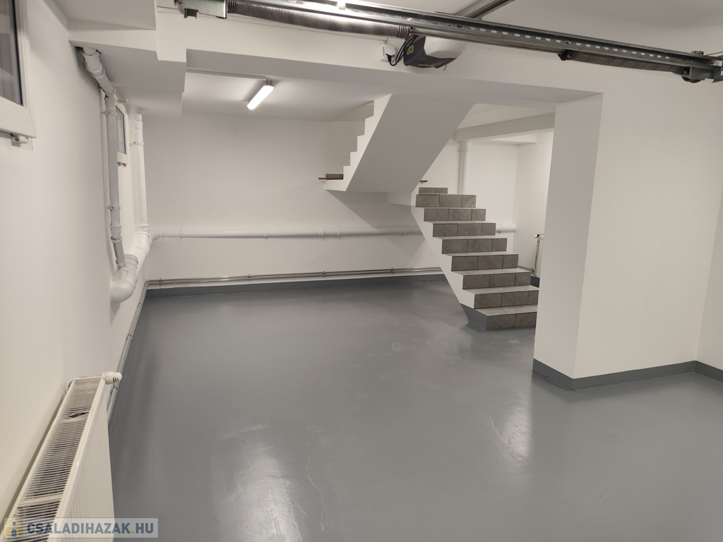 Az épület egy része alatt szuterén található, amely 2 ( 1 kicsi és 1 nagy) kocsinak biztosit parkoló helyet (egymás mögött), valamint itt található a kazánház egyben a mosó konyhával. Mosógép, száritógépnek és víz tisztító rendszernek kiépített bekötési lehetőség.