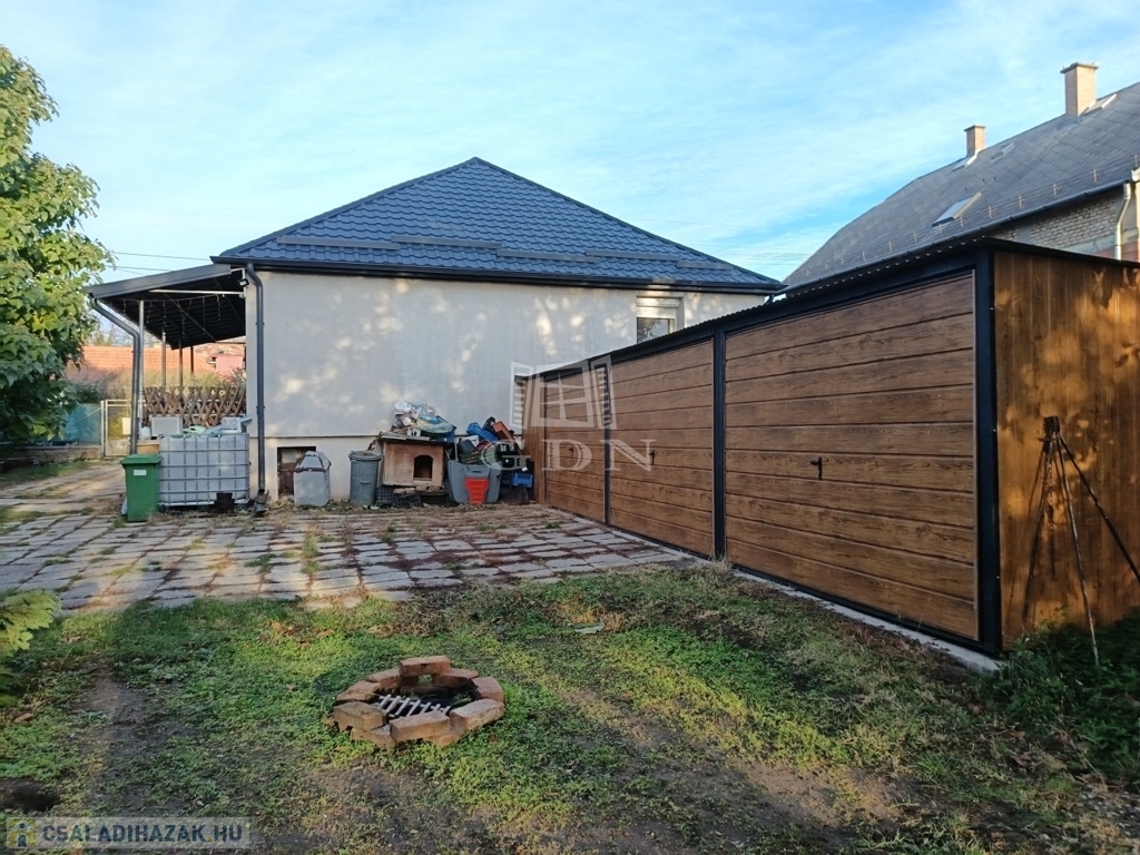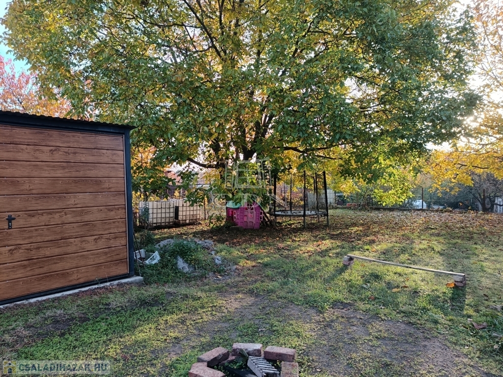 A kertben helyt kapott egy betonalappal rendelkező 3 állásos lemezgarázs is, ahonnan a pince megközelíthető 810 nm nagyságú).