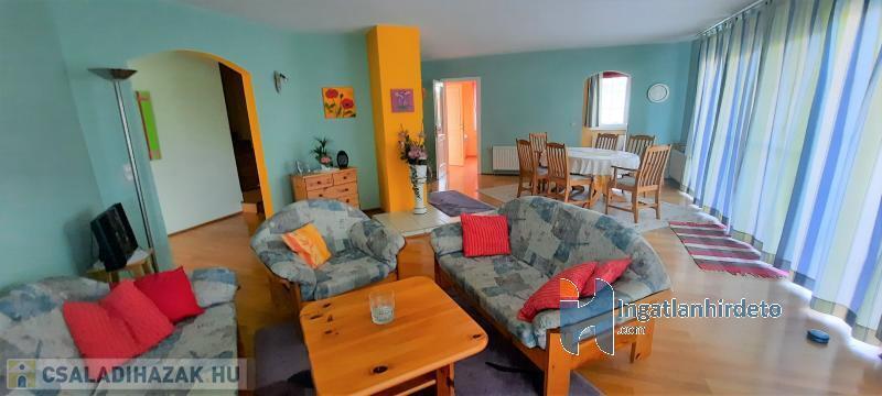 Elhelyezkedése: Belterület Tájolása: Nyugati tájolású Állapota: Újszerű Komfort besorolása: összkomfortos Építési éve: 2008 Alapterülete: 210 m2 Telekterülete: 1 187 m2 Szobák száma: 6szoba Közművek: Gáz, Víz, Villany, Csatorna Gázellátás: Vezetékes Vízellátás: Vezetékes víz Melegvíz-ellátás: Gázkazán Áramellátás: 230V/380 V Fűtés módja: Gáz Fűtés típusa: Cirkó Homlokzat állapot: Újszerű Építési mód: Tégla Tető formája: Magas Tető anyaga: Cserép Parkolási lehetőség: Garázsban Kilátás: Hegyi panoráma, Egyéb panorámás Jellemzői: Csendes környék, Két bejárat, Étkező, Udvari terasz, Beépített szekrény, Beépített konyhabútor, Kert, Kerítés, Zöldterület, Kapunyitó automatika, Beépített tetőtér Energetikai besorolás: C Egyéb jellemzők: Erkély Tv, Internet: Kábeltévé, Internet Terhelések: Tehermentes ingatlan Eladásra vonatkozó információk: Az ár tartalmazza a teljes berendezést, Azonnal beköltözhető