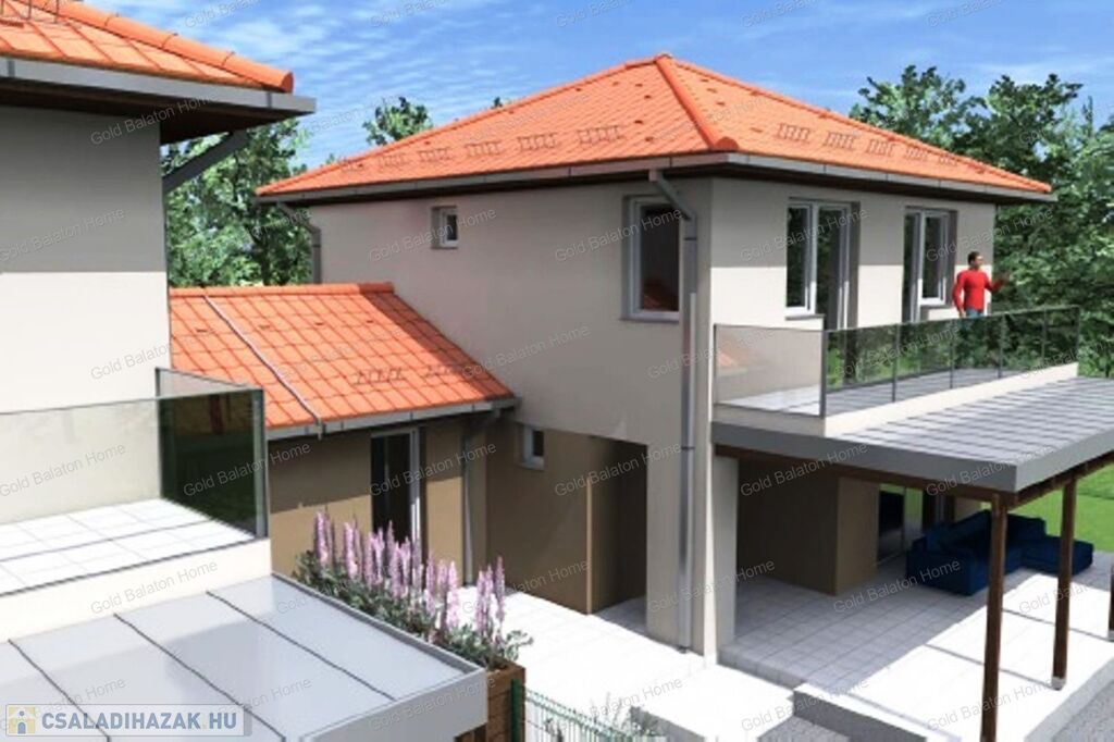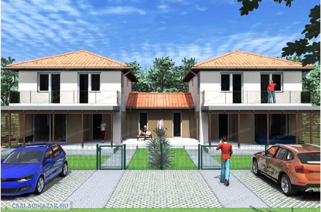Kétszintes nívós IKERHÁZAK rendezett udvarral, a Hévízi-tótól 3 500 méterre, a Balatontól 4 500 méterre.