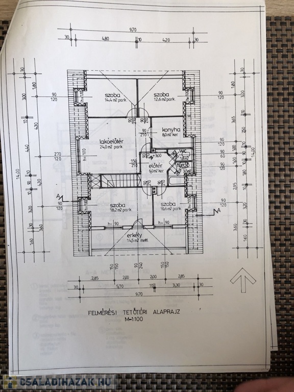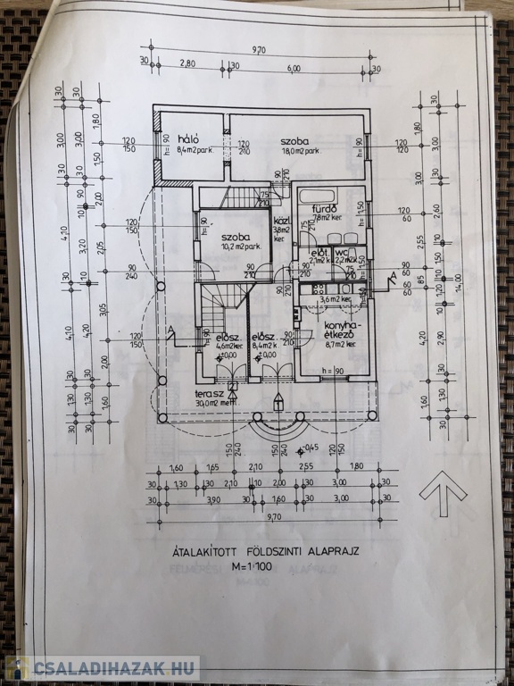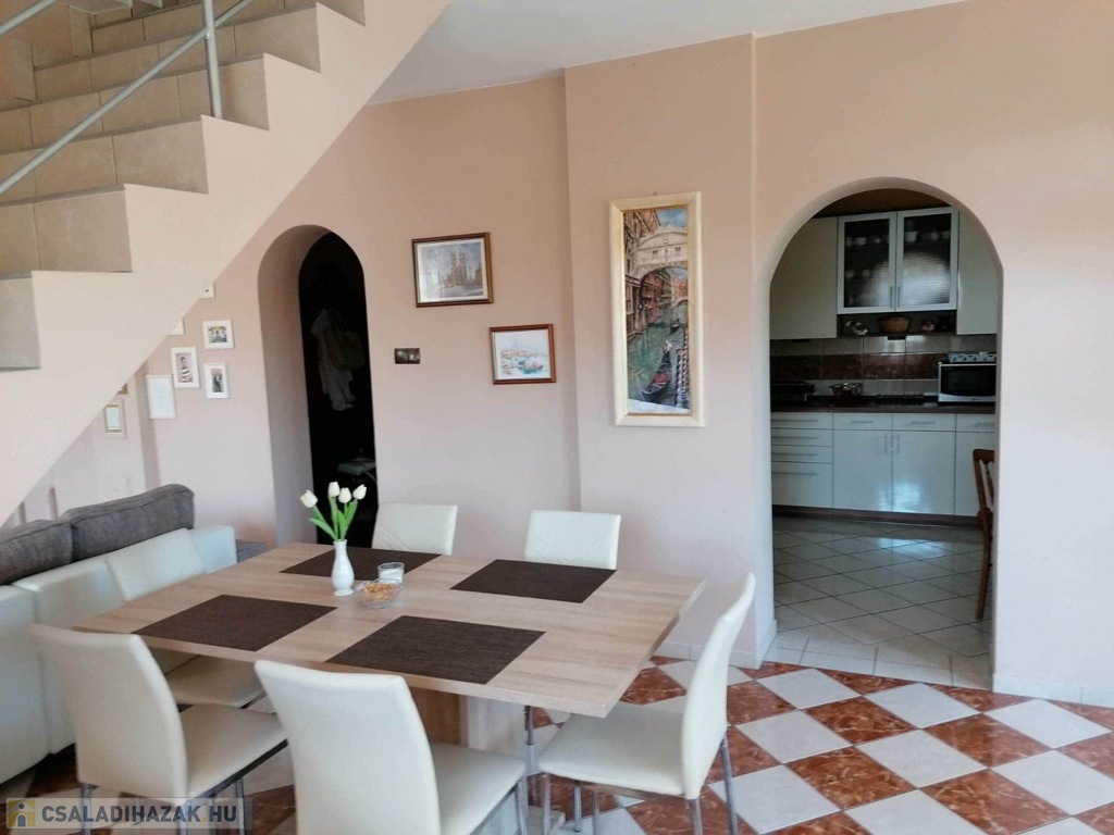 • Földszint (110 m²): Étkezővel ellátott nappali, konyha, 2 szoba, fürdőszoba, külön WC.