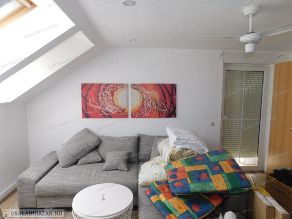 - két külön bejáratú apartman az emeleten: amerikai konyhás nappali, hálószoba, fürdőszoba, erkély, a másik apartman igény szerint alakítható ki, befejezése az új tulajdonosra vár