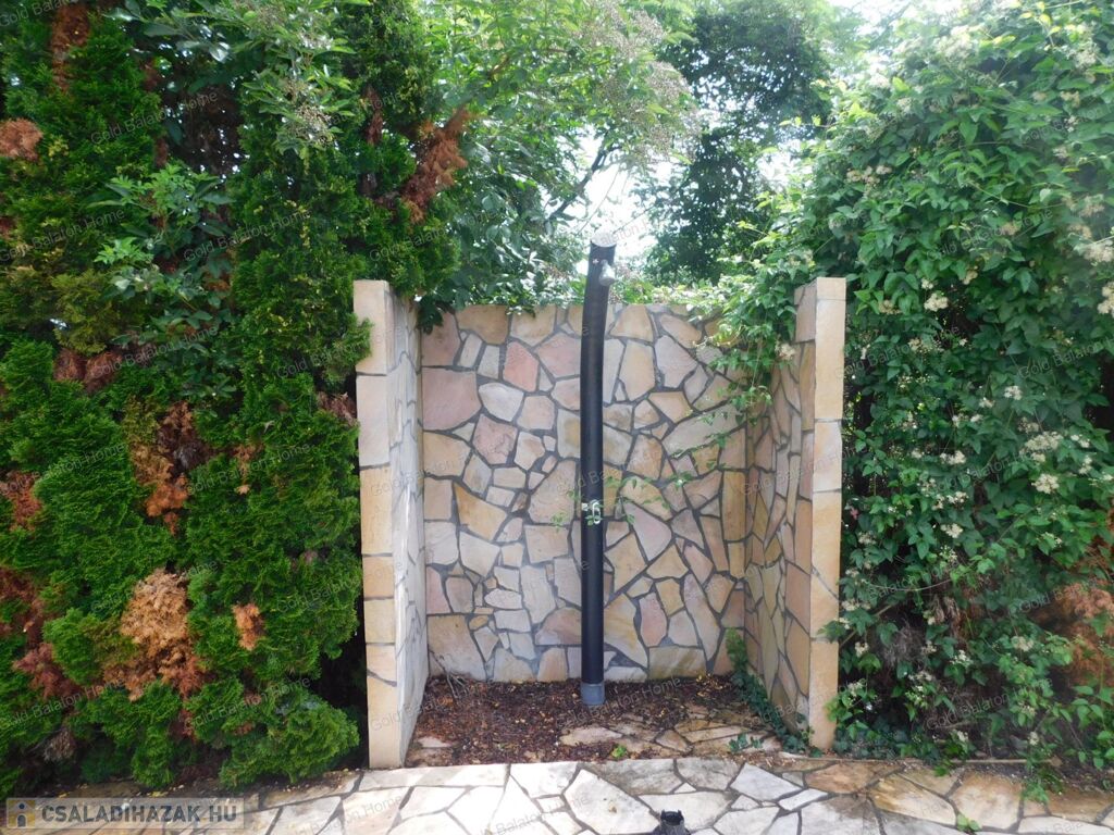 - kerti grillező, kerti medence napkollektoros zuhanyzóval a parkosított udvaron