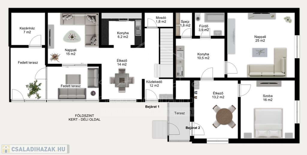 A lakások 60–70 m² alapterületűek, elosztásuk praktikus, akár három külön család kényelmes elhelyezésére is alkalmasak.