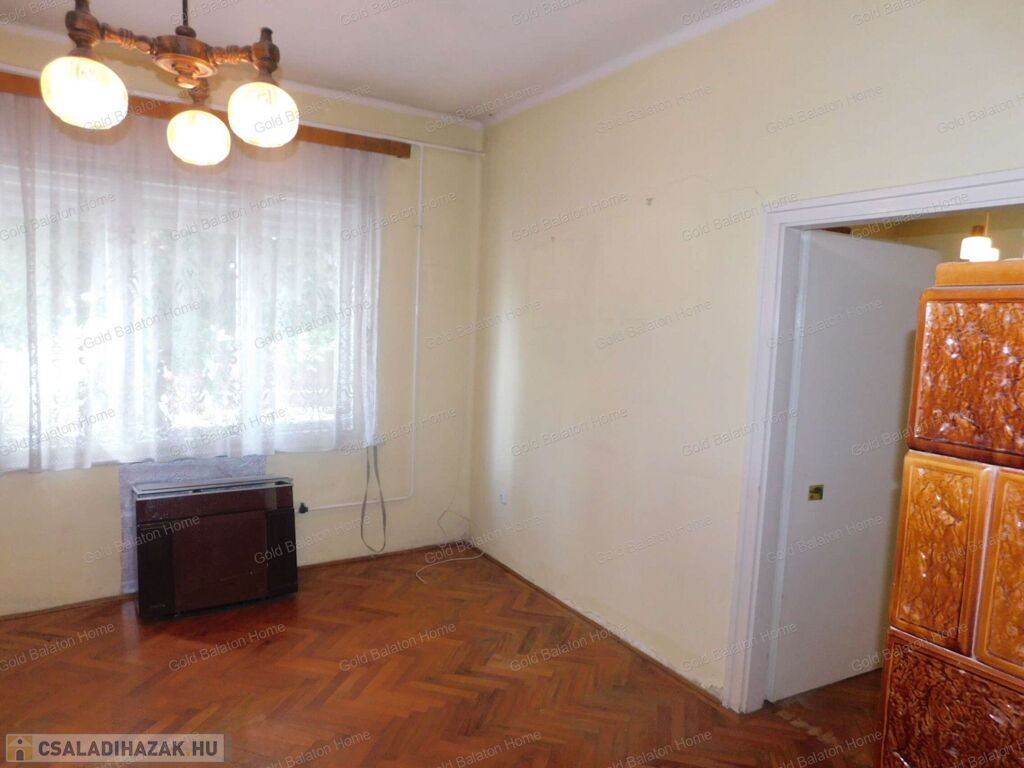 2 utcáról is megközelíthető, egyszintes felújítandó ház, 2+1 szobával, 7 nm-es pincével és 15 m2 tárolóval az udvaron, a Balatontól 2000 méterre eladó.