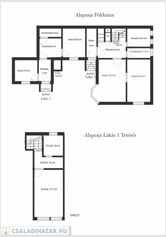 -Tetőtér: fürdő+WC, szoba (30 m²)