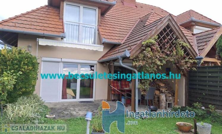 Keszthely Kertvárosában eladó egy Ikerház gyönyörű kilátással Hévízre Zala megyében!Keszthely kertvárosának egyik legcsendesebb, de jól megközelíthető részén eladó egy kétszintes, tetőtér beépítéses, nagy nappalis plusz 2 hálós, kb.107 m2-es ikerház garázzsal.