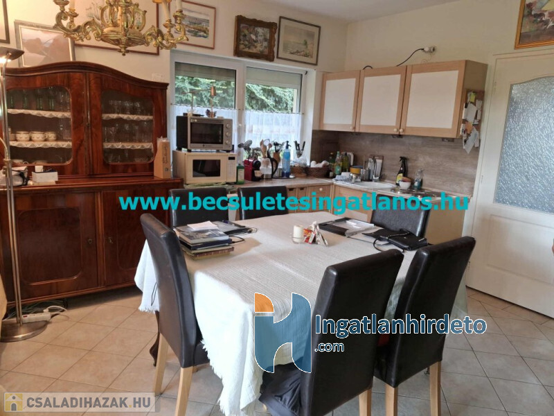 Elhelyezkedése: Belterület Állapota: Jó Komfort besorolása: Komfortos Építési éve: 1980 Alapterülete: 107 m2 Telekterülete: 366 m2 Szobák száma: 2 + 1 szoba Közművek: Gáz, Víz, Villany, Csatorna Gázellátás: Vezetékes Vízellátás: Vezetékes víz Melegvíz-ellátás: Gázkazán Áramellátás: 230V Fűtés módja: Gáz Fűtés típusa: Cirkó Homlokzat állapot: átlagos Építési mód: Tégla Tető formája: Magas Tető anyaga: Pala Parkolási lehetőség: Garázsban Kilátás: Udvari kilátás, Egyéb panorámás Jellemzői: Csendes környék, Jó közlekedés Energetikai besorolás: Nincs adat Egyéb jellemzők: Terasz Közelben: Autóbuszállomás, Helyi autóbuszállomás, Bolt, Vendéglátó egység, Reptér, Autópálya Eladásra vonatkozó információk: Kizárólag magánszemélyek jelentkezését várjuk